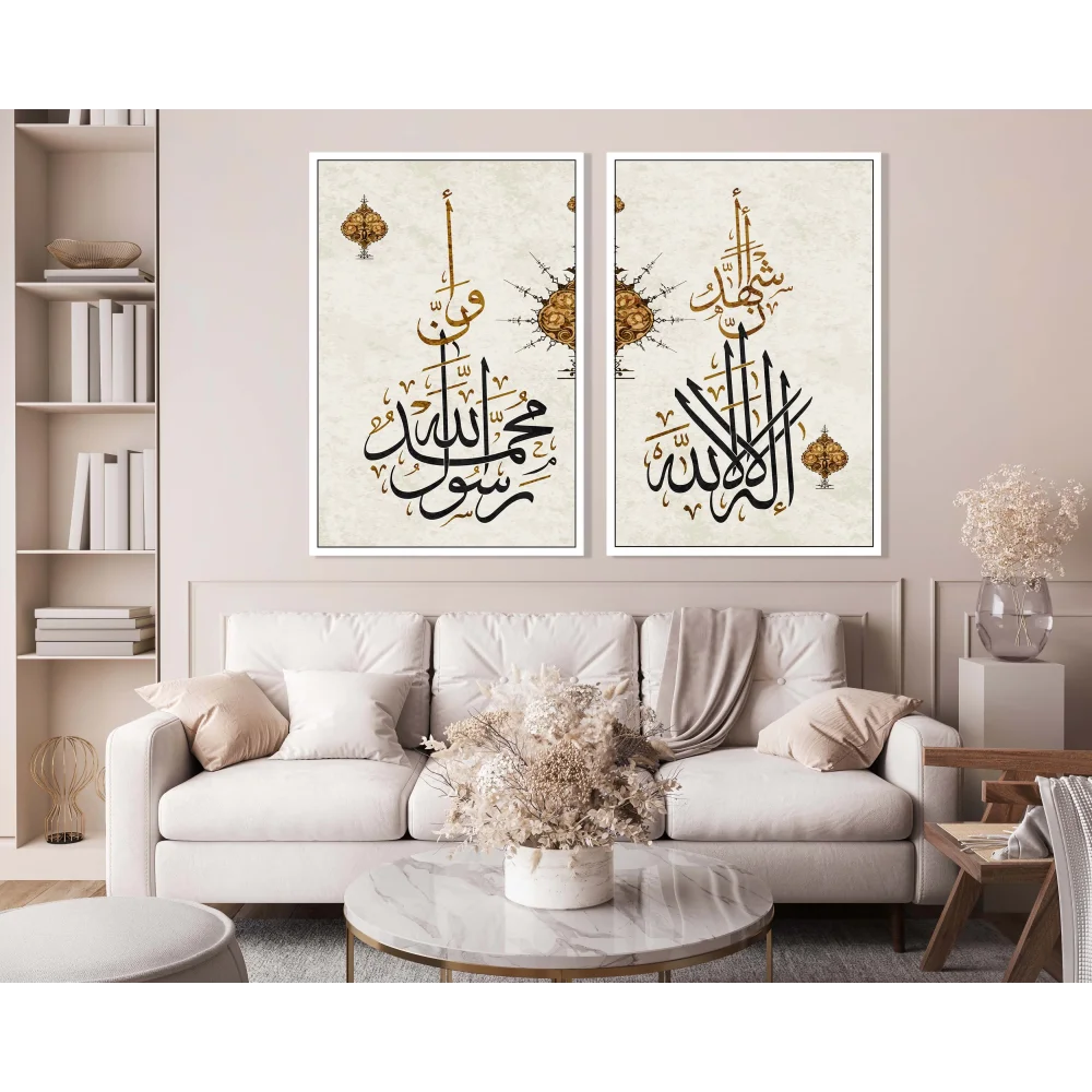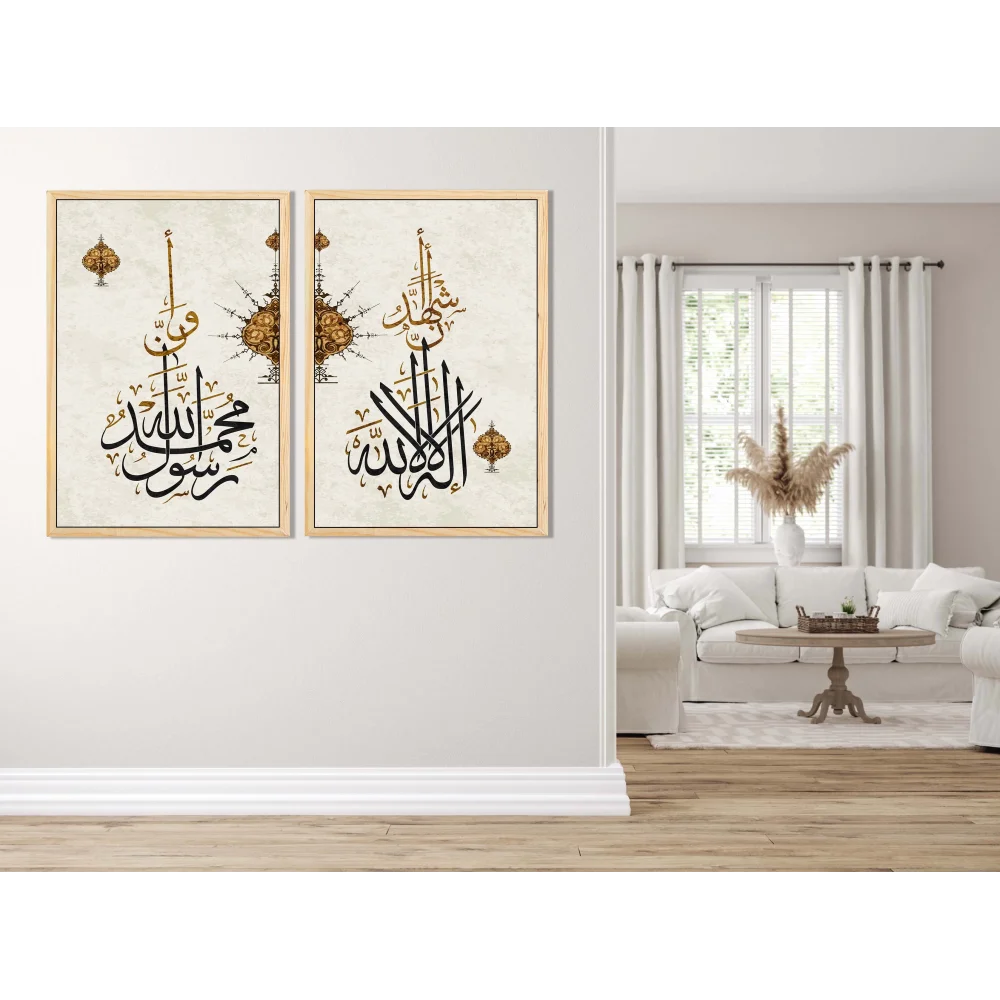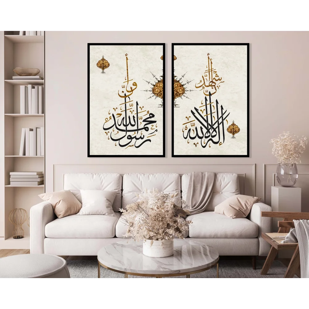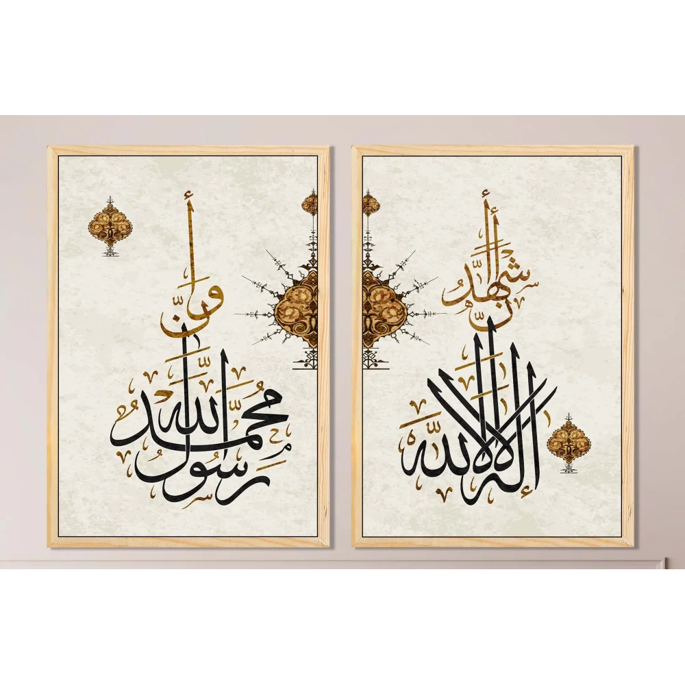 2 Parça Çerçeveli Kelim-i Şehadet Yazılı Ahşap Tablo Seti