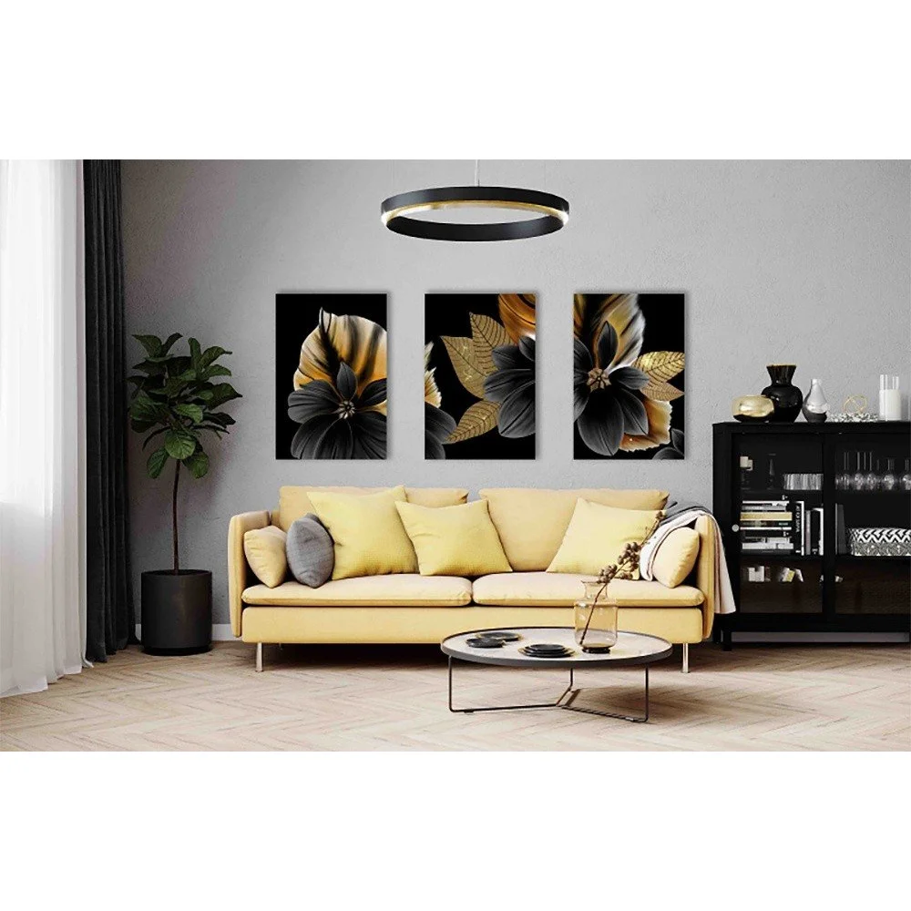 • 3 Parça Altın Çiçek Kanvas Tablo