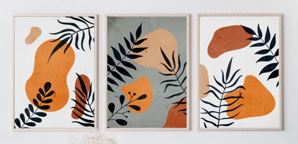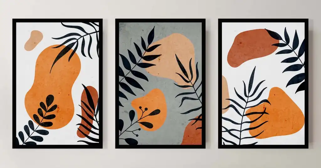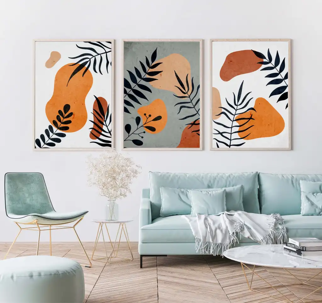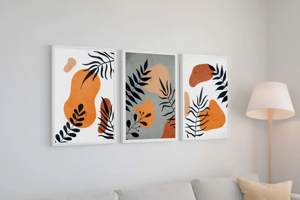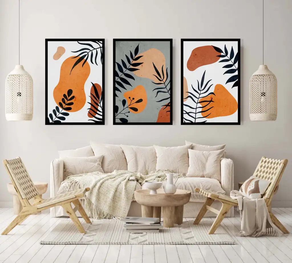 3 Parça Boho Çerçeveli Ahşap Tablo Seti, Ev Dekoru, Soyut Tablo