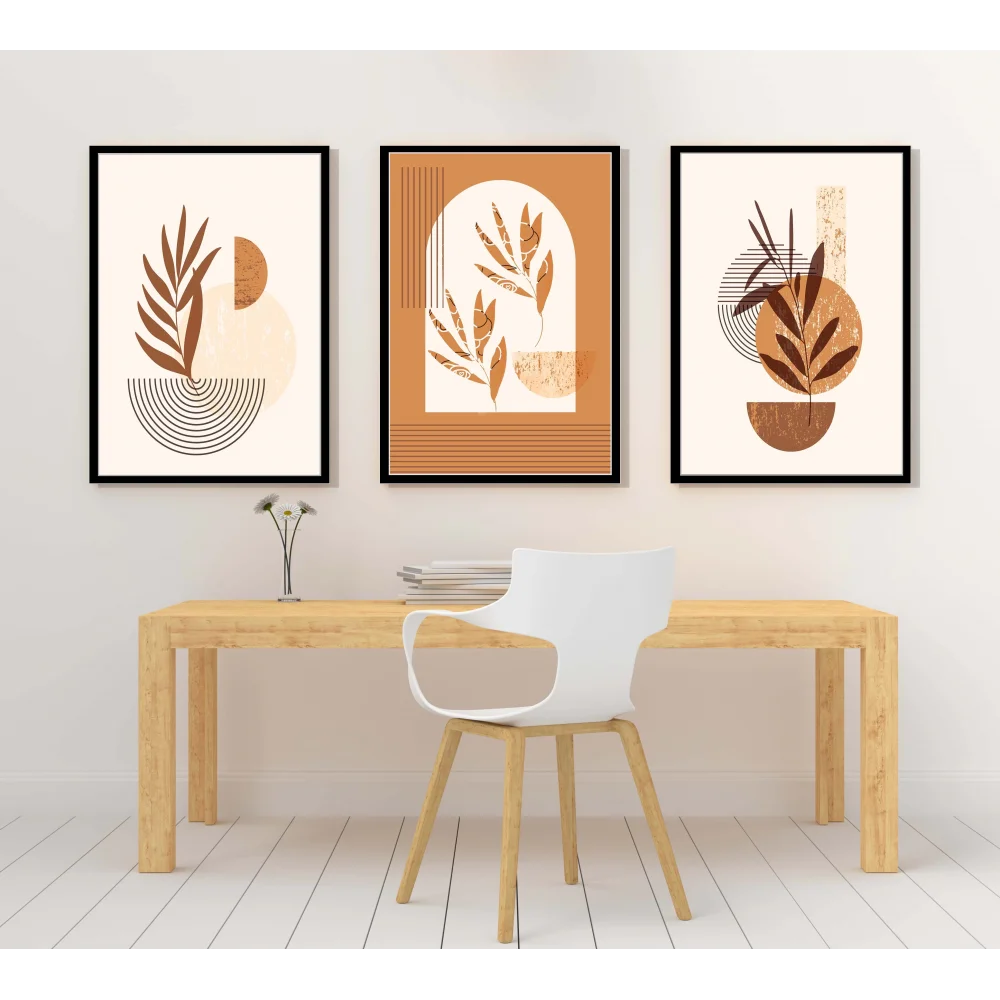 3 Parça Boho Çiçekler, Çerçeveli Ahşap Tablo Seti, Ev Dekoru