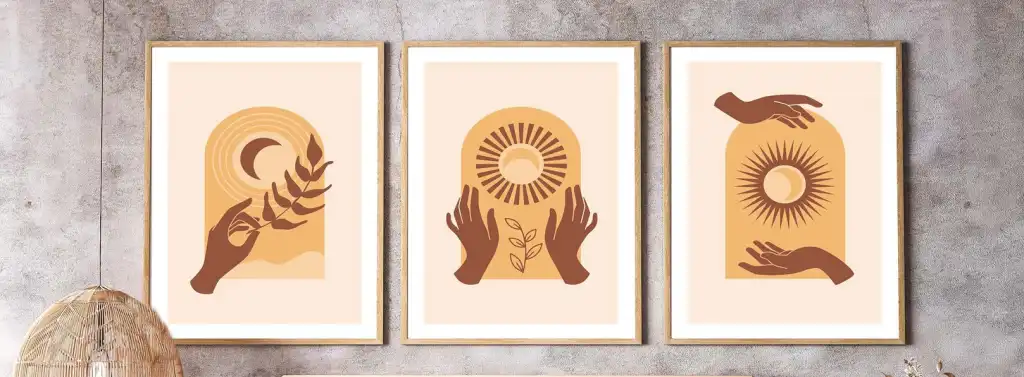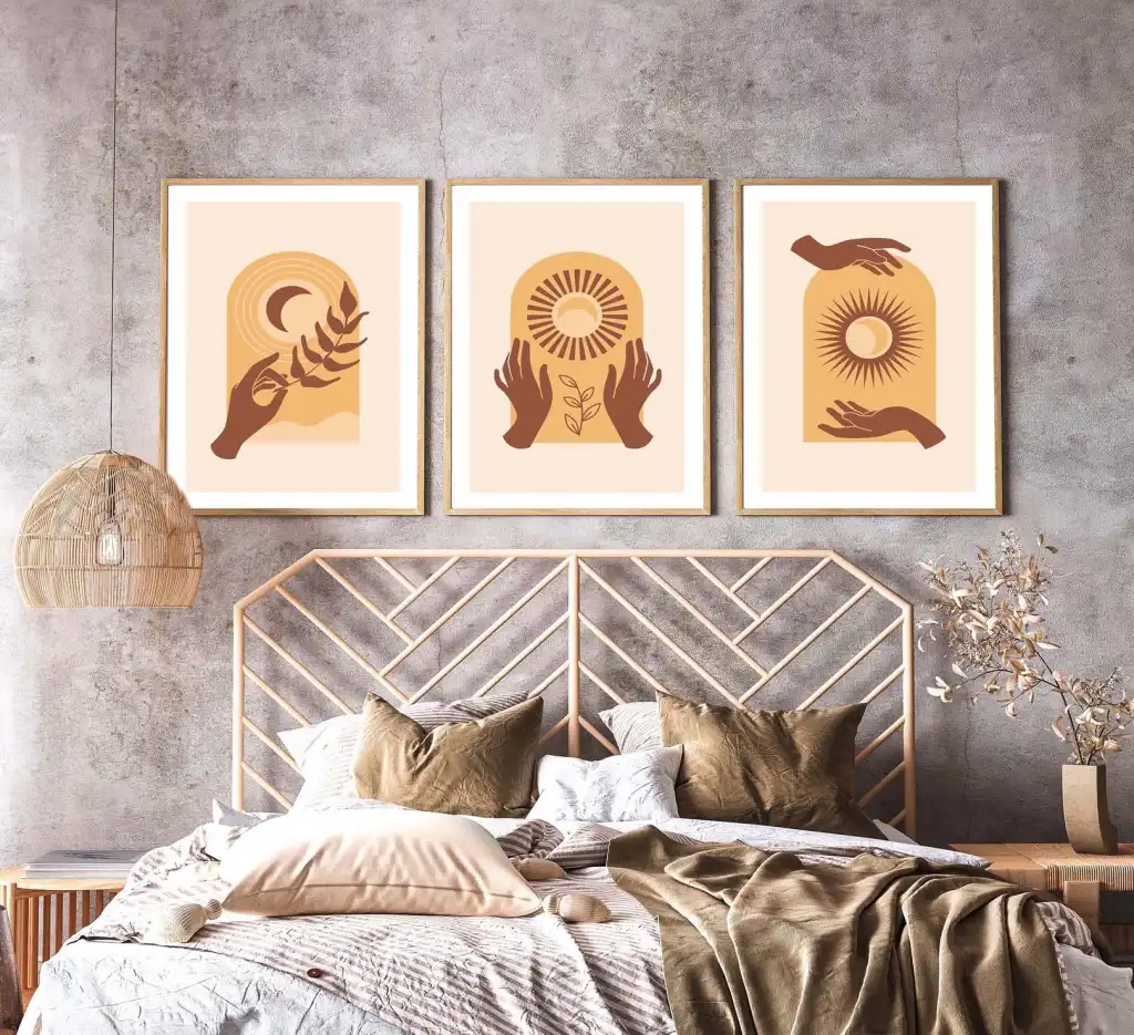 3 Parça Boho Style Çerçeveli Ahşap Tablo Seti, Ev Dekoru