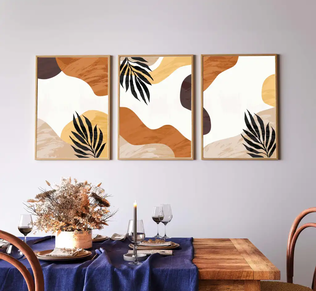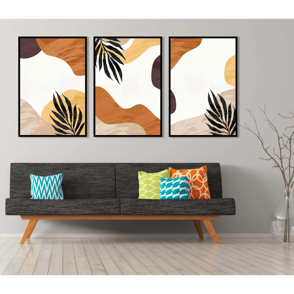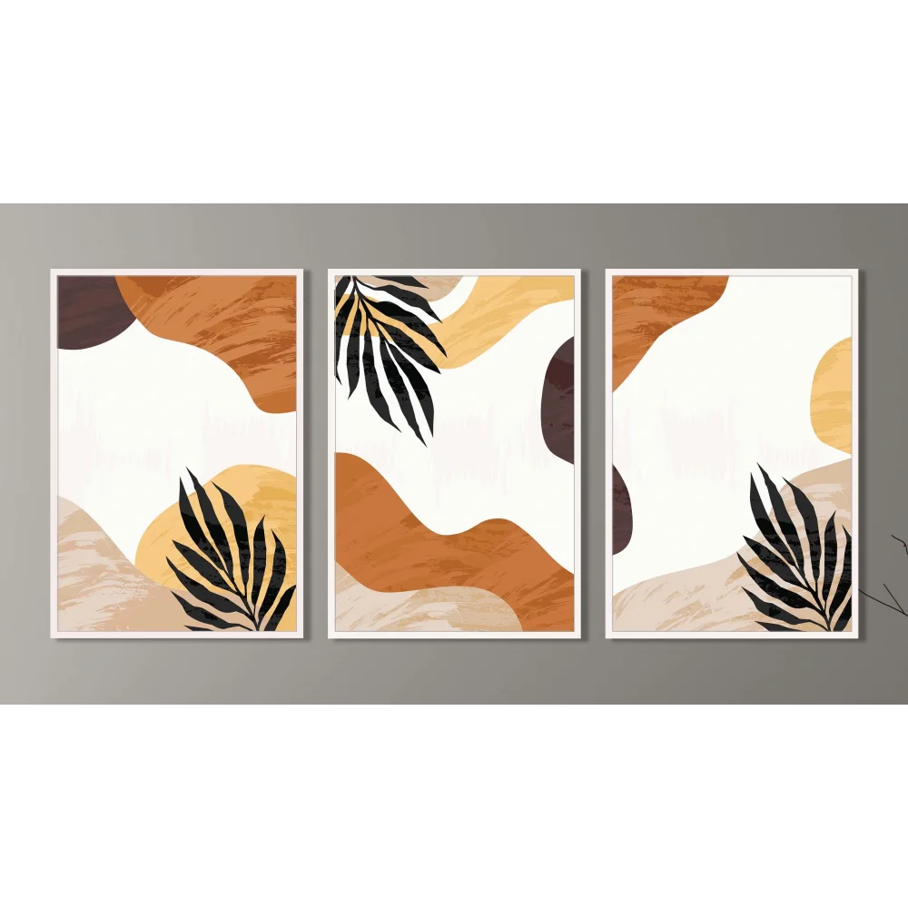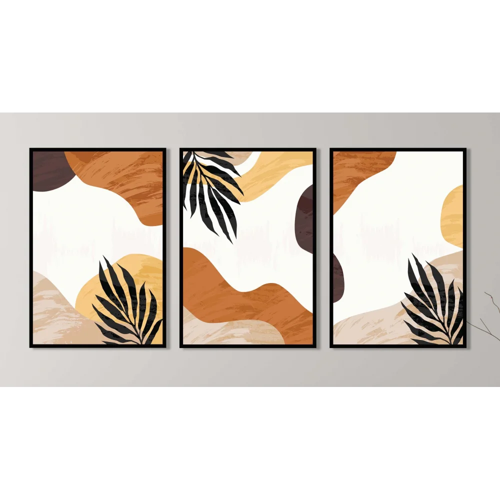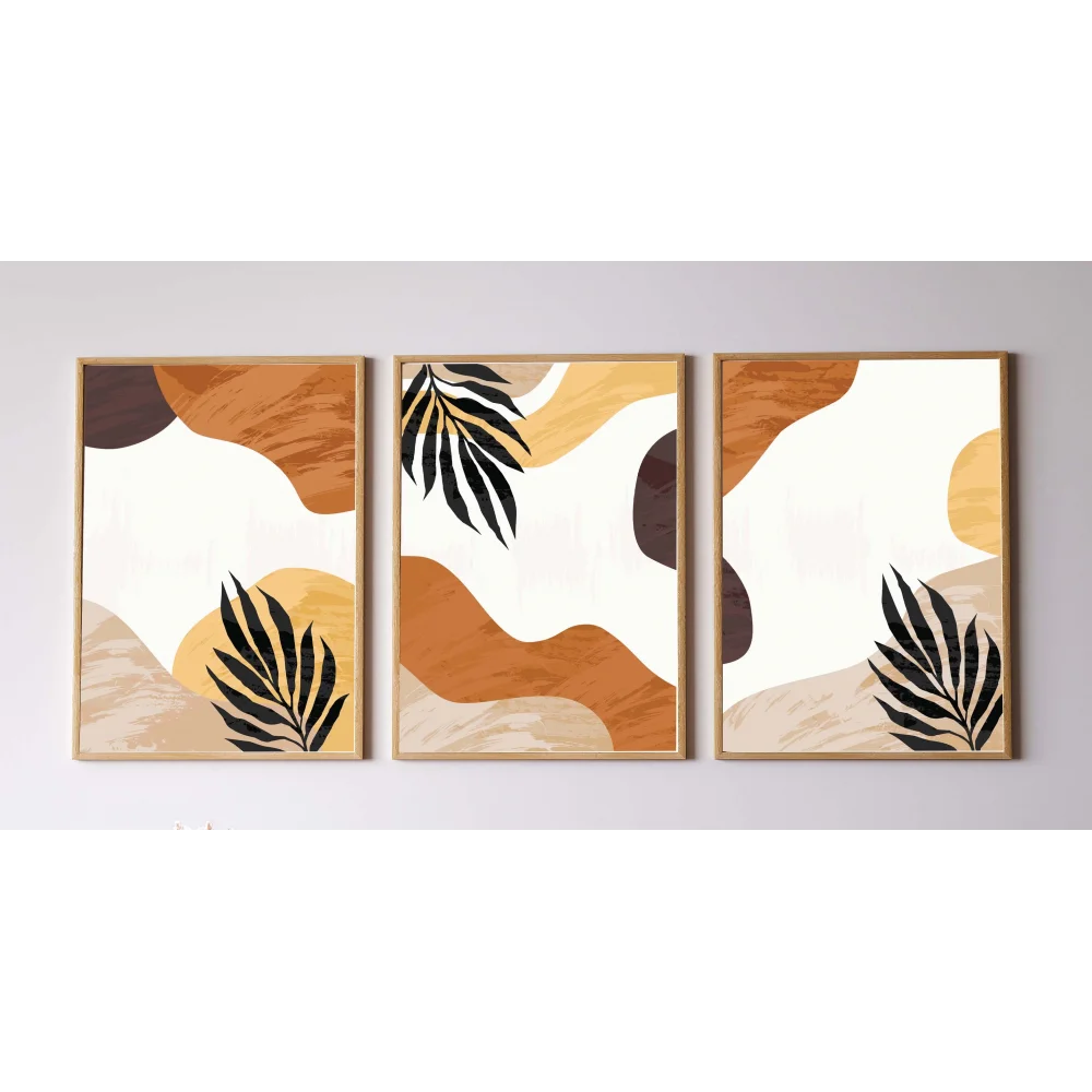 3 Parça Çerçeveli Dekoratif Boho Ahşap Tablo seti, Ev Dekoru, Soyut Tablo