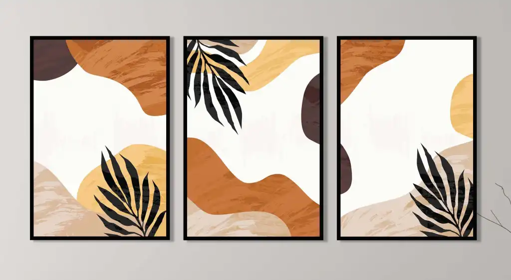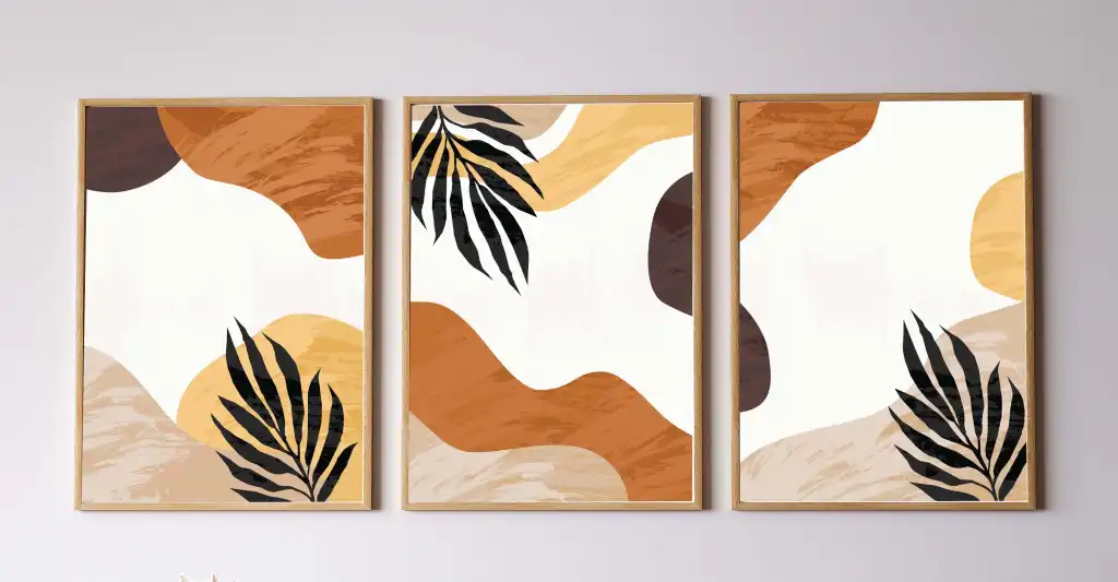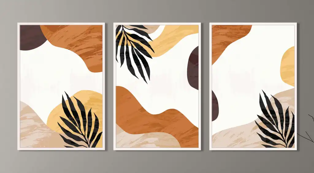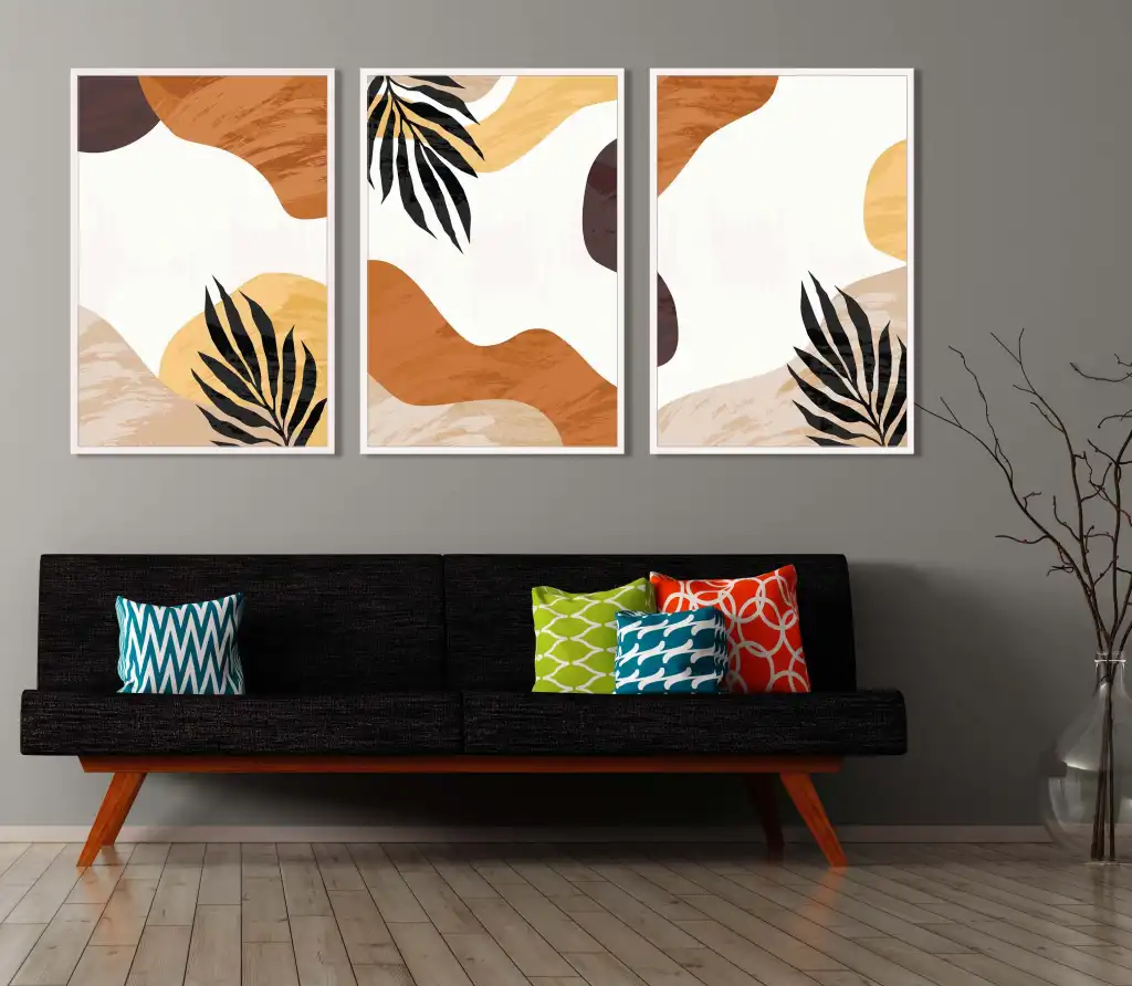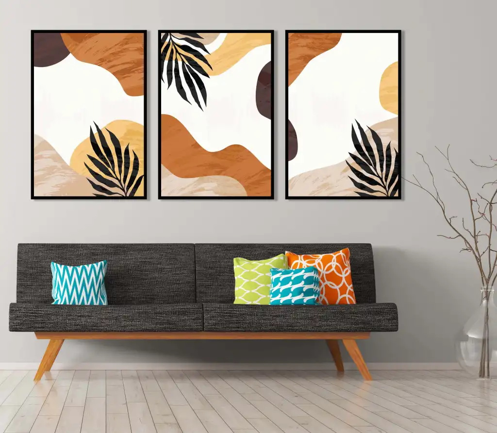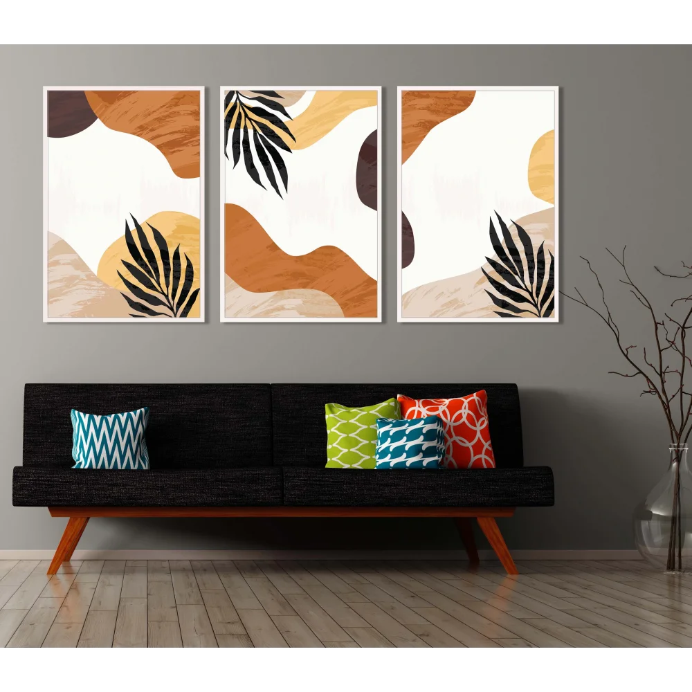 3 Parça Çerçeveli Dekoratif Boho Ahşap Tablo seti, Ev Dekoru, Soyut Tablo