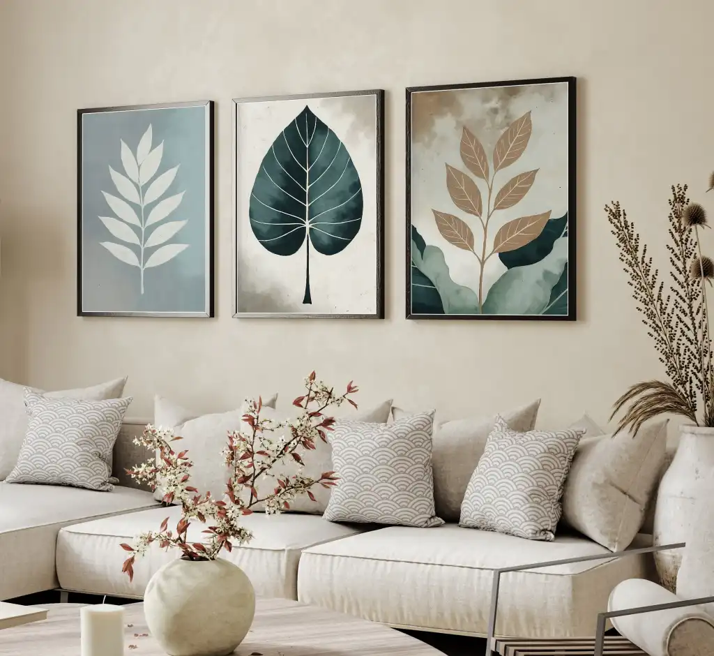 3 Parça Çerçeveli Dekoratif Çiçekler Ahşap Tablo seti, Ev Dekoru