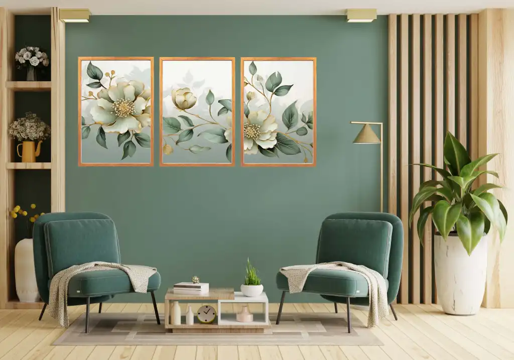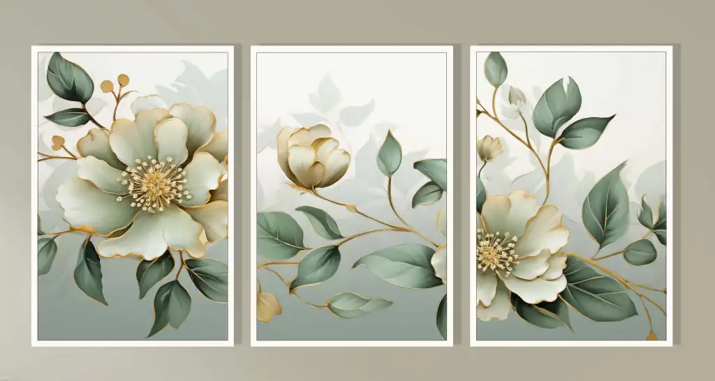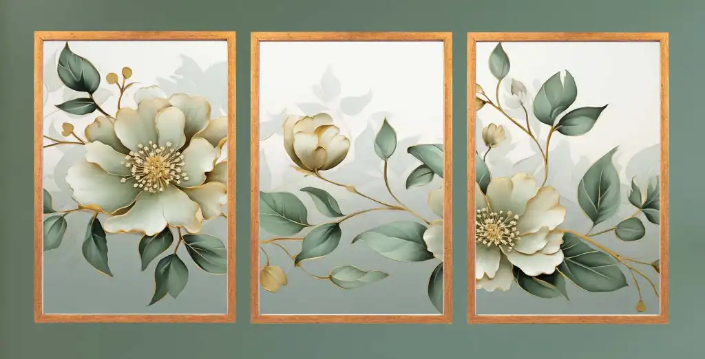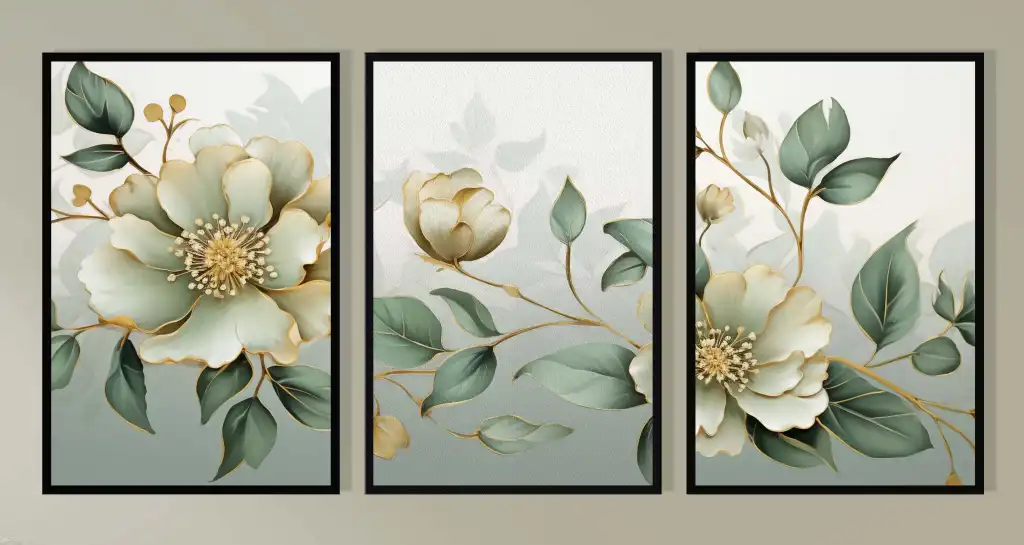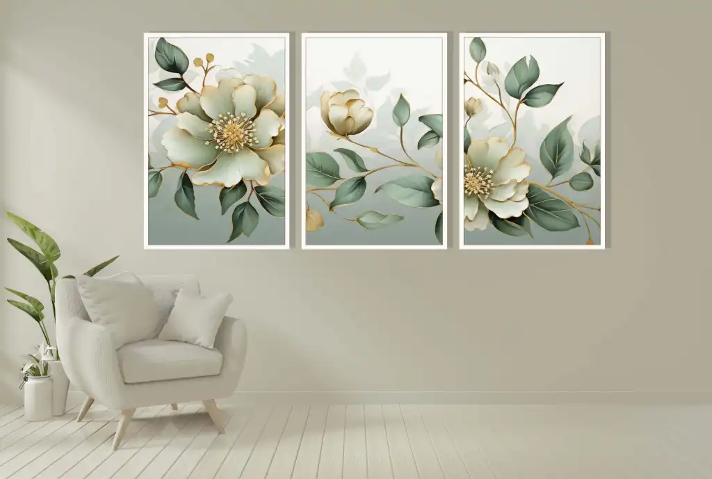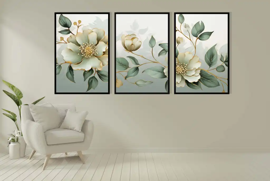 3 Parça Çerçeveli Dekoratif Çiçekler Ahşap Tablo seti, Ev Dekoru, Soyut Tablo
