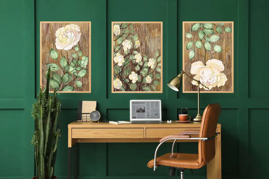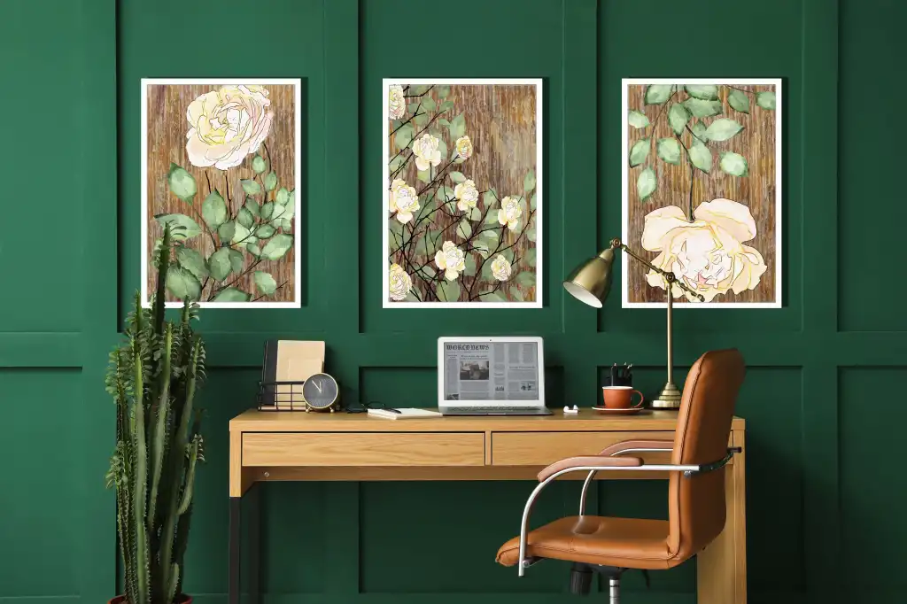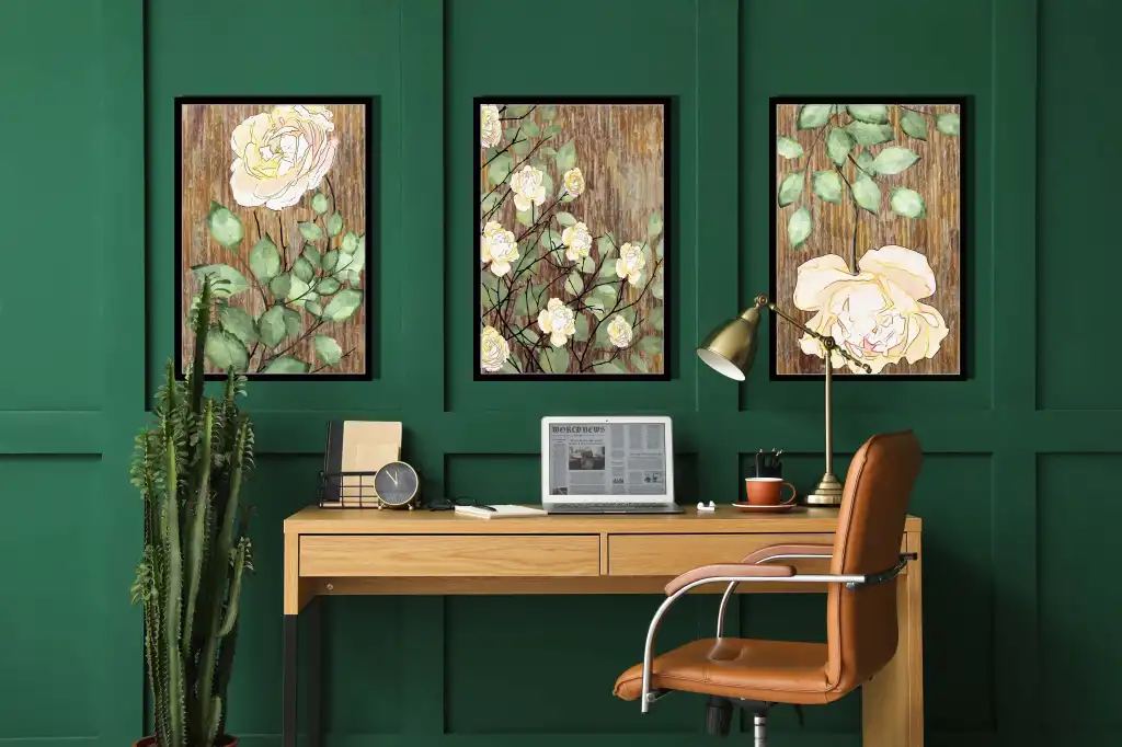 3 Parça Çerçeveli Dekoratif Güller Ahşap Tablo seti, Ev Dekoru, Soyut Tablo