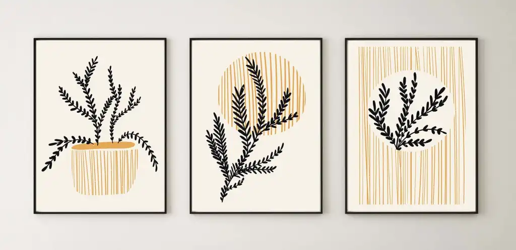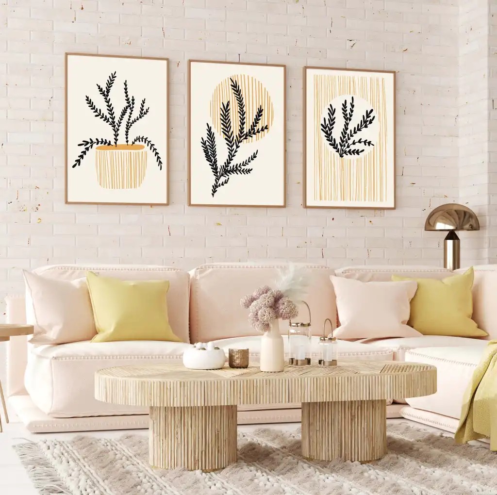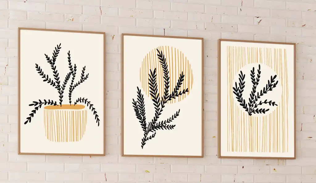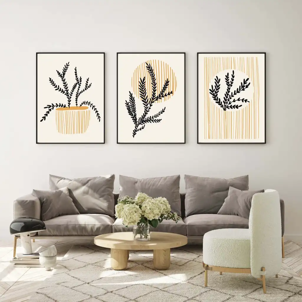 3 Parça Çerçeveli Dekoratif Soyut Çiçekler Ahşap Tablo seti, Ev Dekoru, Soyut Tablo