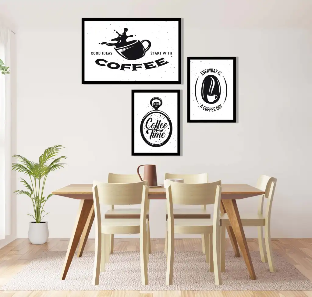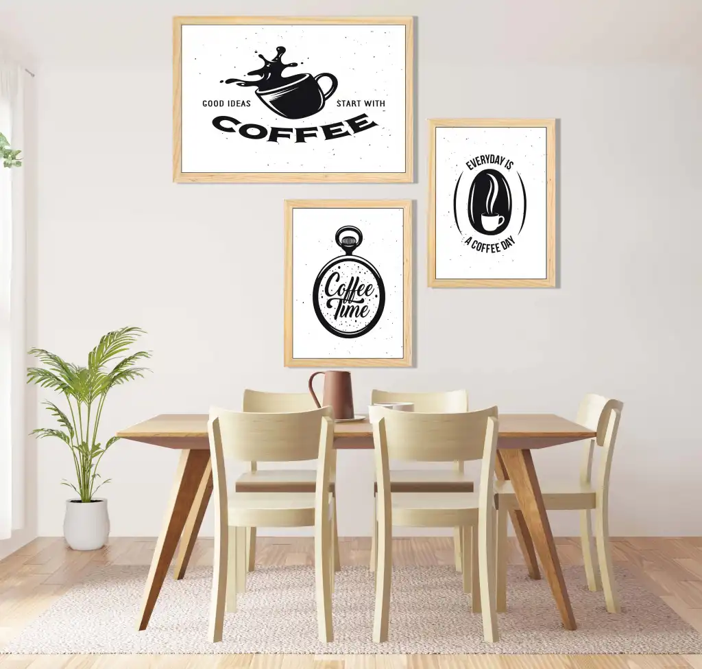 3 Parça Çerçeveli Kahve, Çay, Mutfak Köşesi Ahşap Tablo Seti, Ev Dekoru