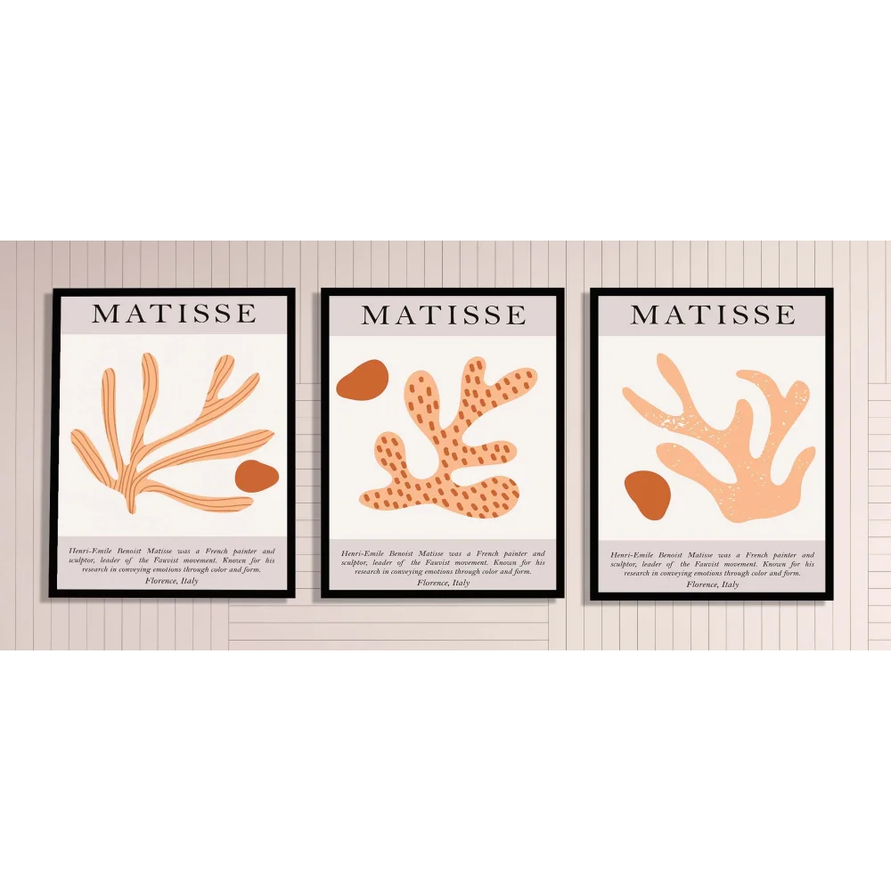 3 Parça Çerçeveli Matisse Ahşap Tablo Seti, Soyut Tablo, Ev Dekoru
