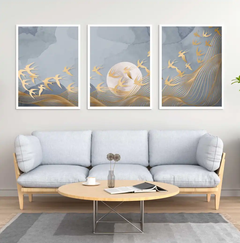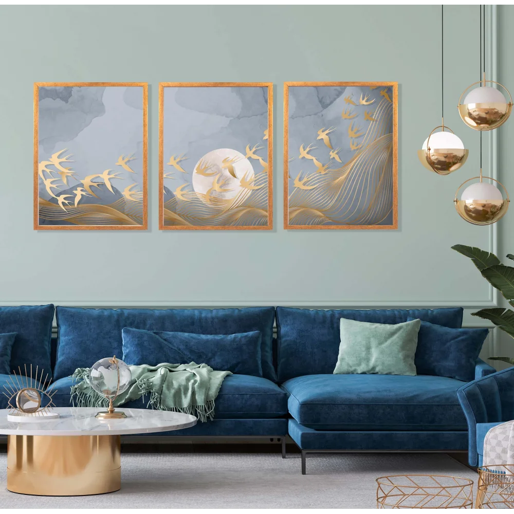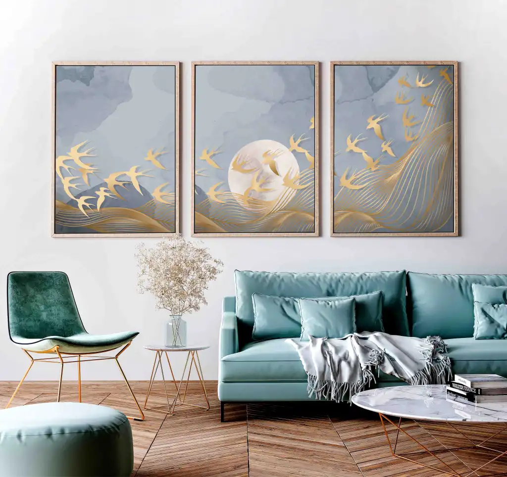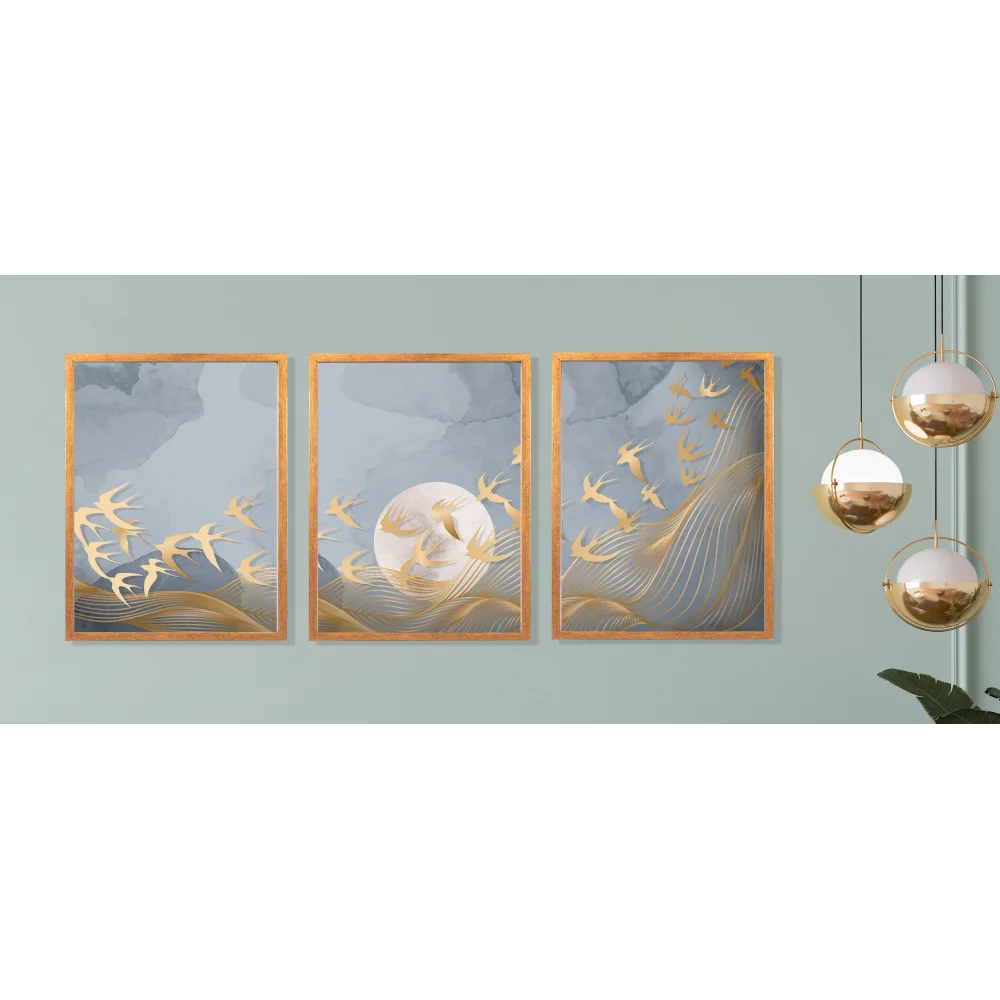 3 Parça Çerçeveli Soyut Ahşap Tablo Seti, Ev Dekoru
