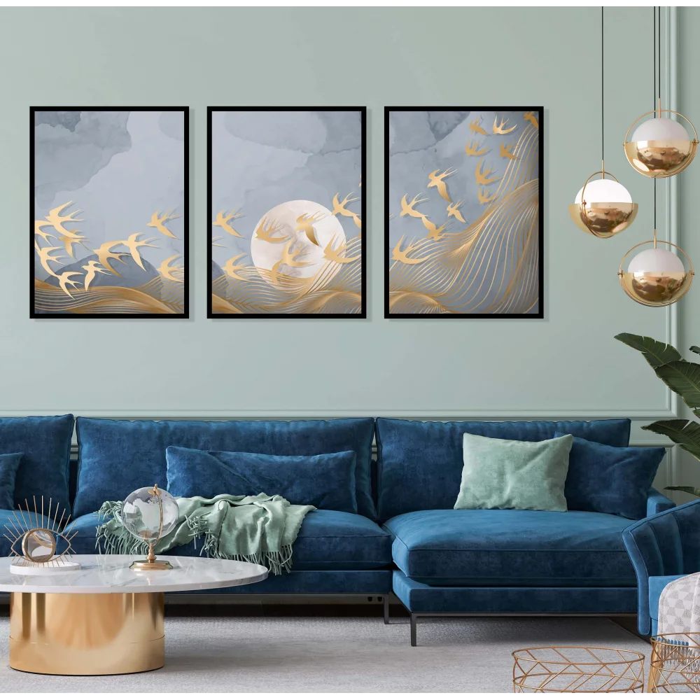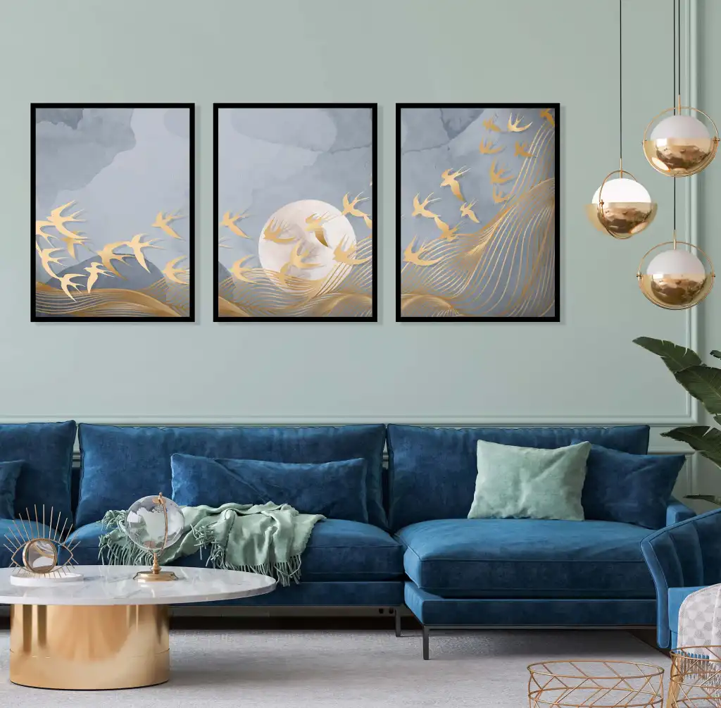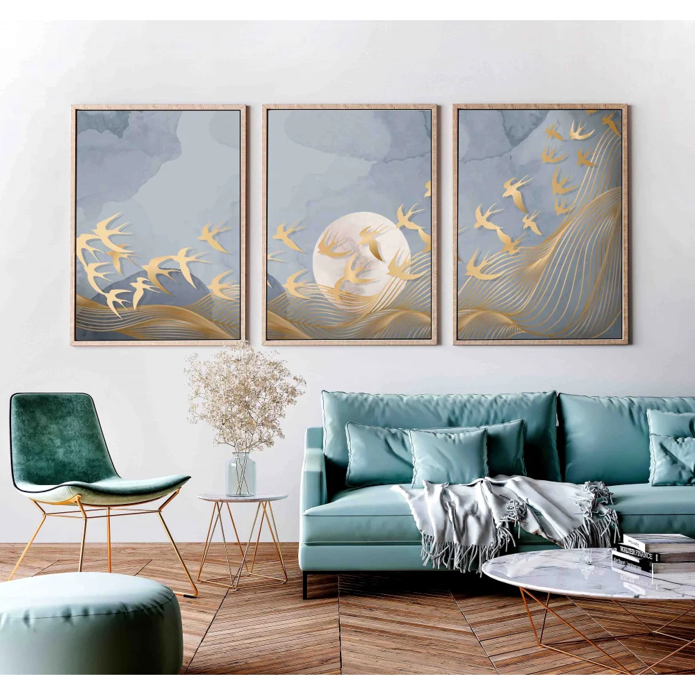 3 Parça Çerçeveli Soyut Ahşap Tablo Seti, Ev Dekoru