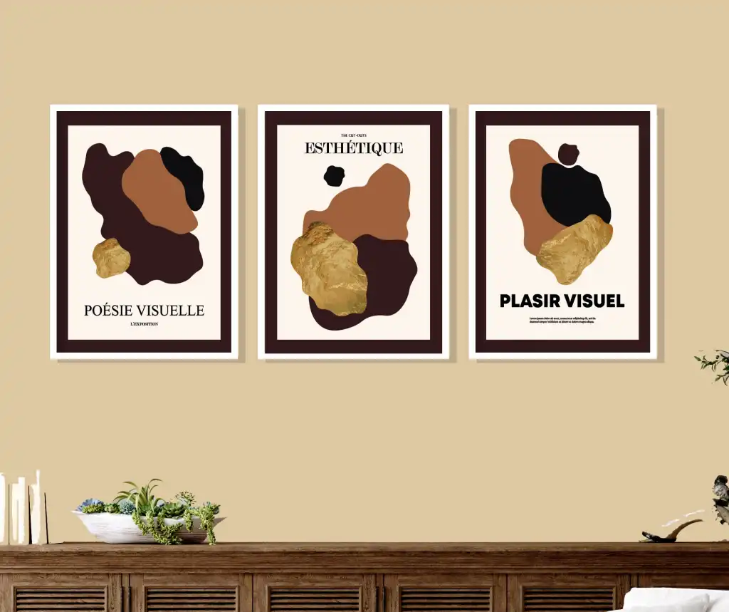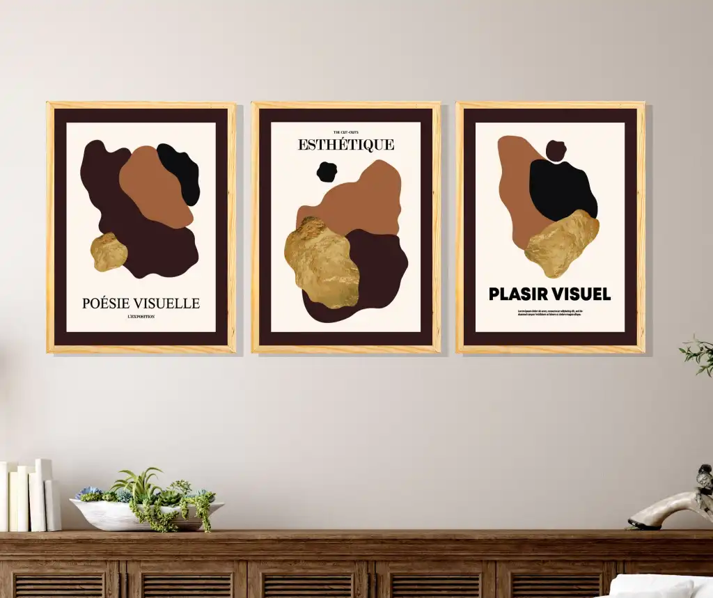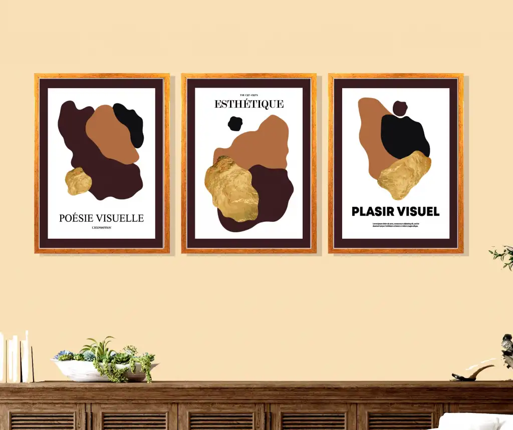 3 Parça Çerçeveli Soyut Ahşap Tablo Seti, Ev Dekoru