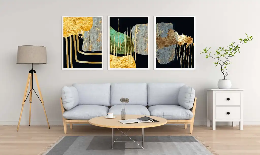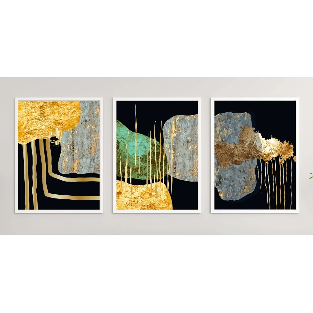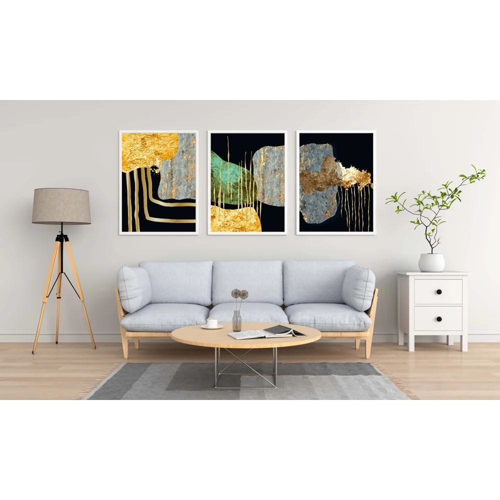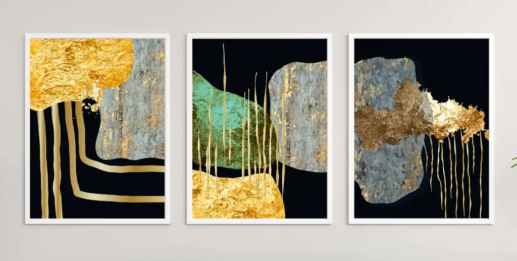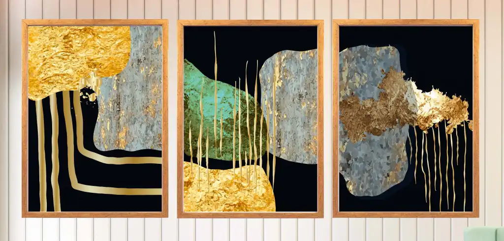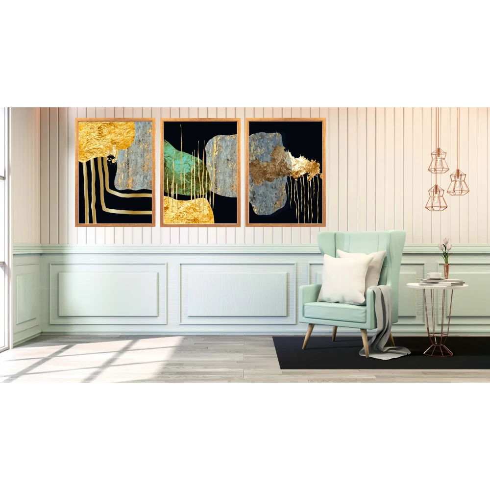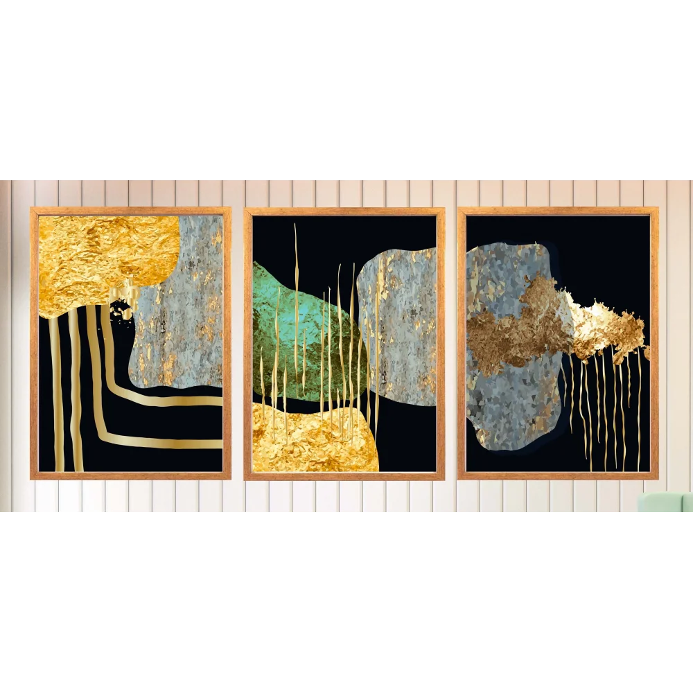 3 Parça Çerçeveli Soyut Ahşap Tablo Seti, Ev Dekoru, Çerçeveli Tablo, Soyut Tablo