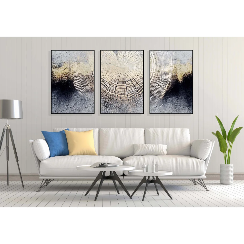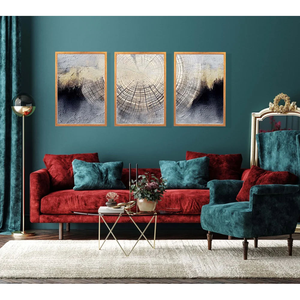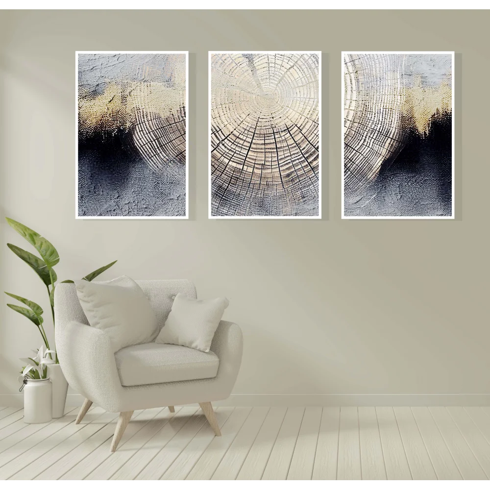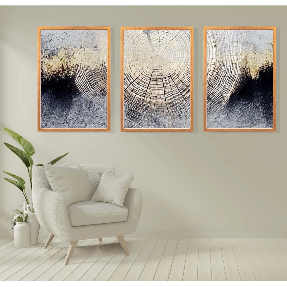 - 3 Parça Dekoratif Kök Desen Çerçeveli Tablo Life , Ev Dekoru , Soyut Tablo , Ahşap Tablo
