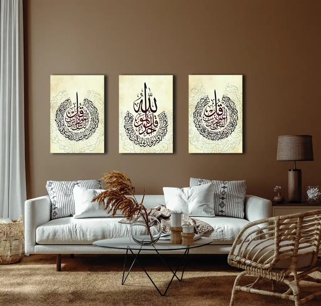 3 PARÇA İHLAS FELAK NAS SURELERİ KANVAS TABLO