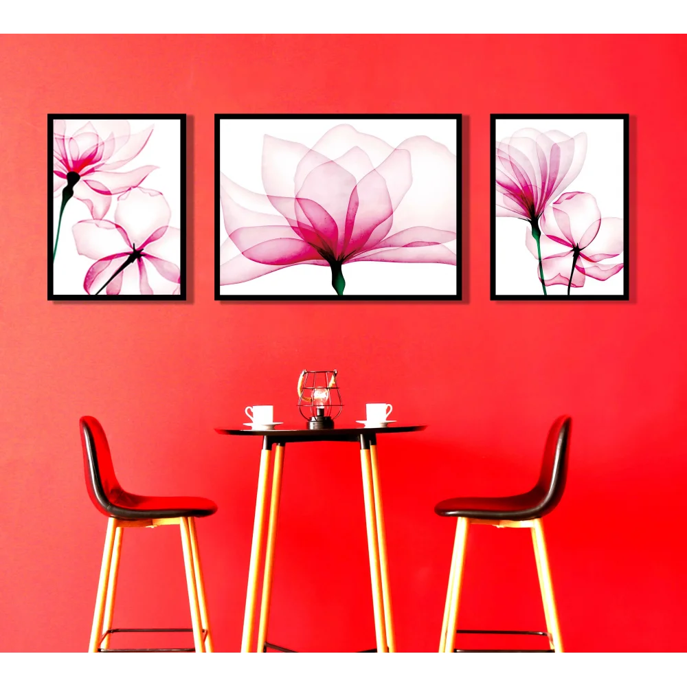 3 Parça Sulu Boya Dekoratif Çiçekler Çerçeveli Ahşap Tablo Seti