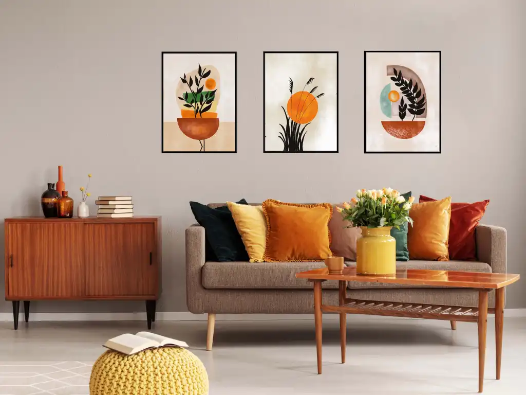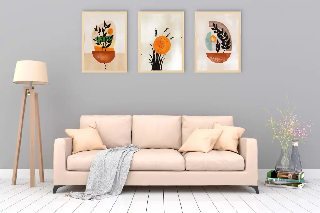 3'lü Bohemian Çerçeveli Tablo , Ev Dekoru , Soyut Tablo , Ahşap Tablo