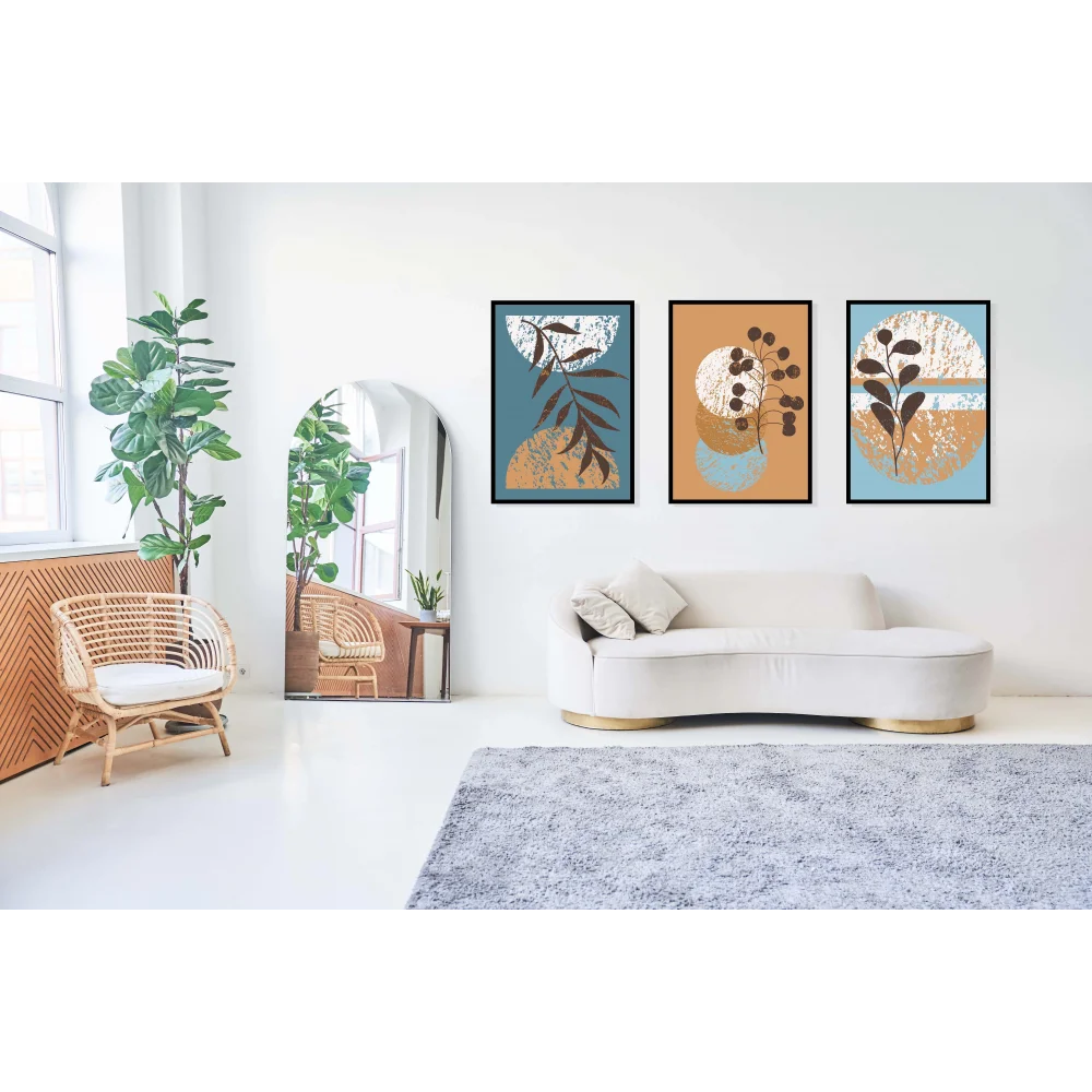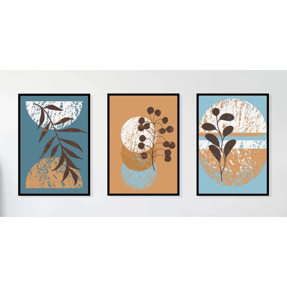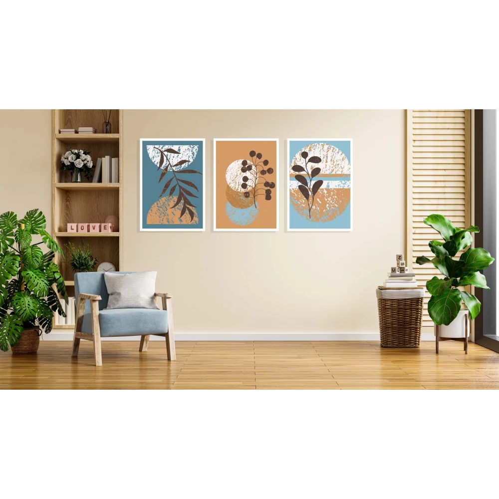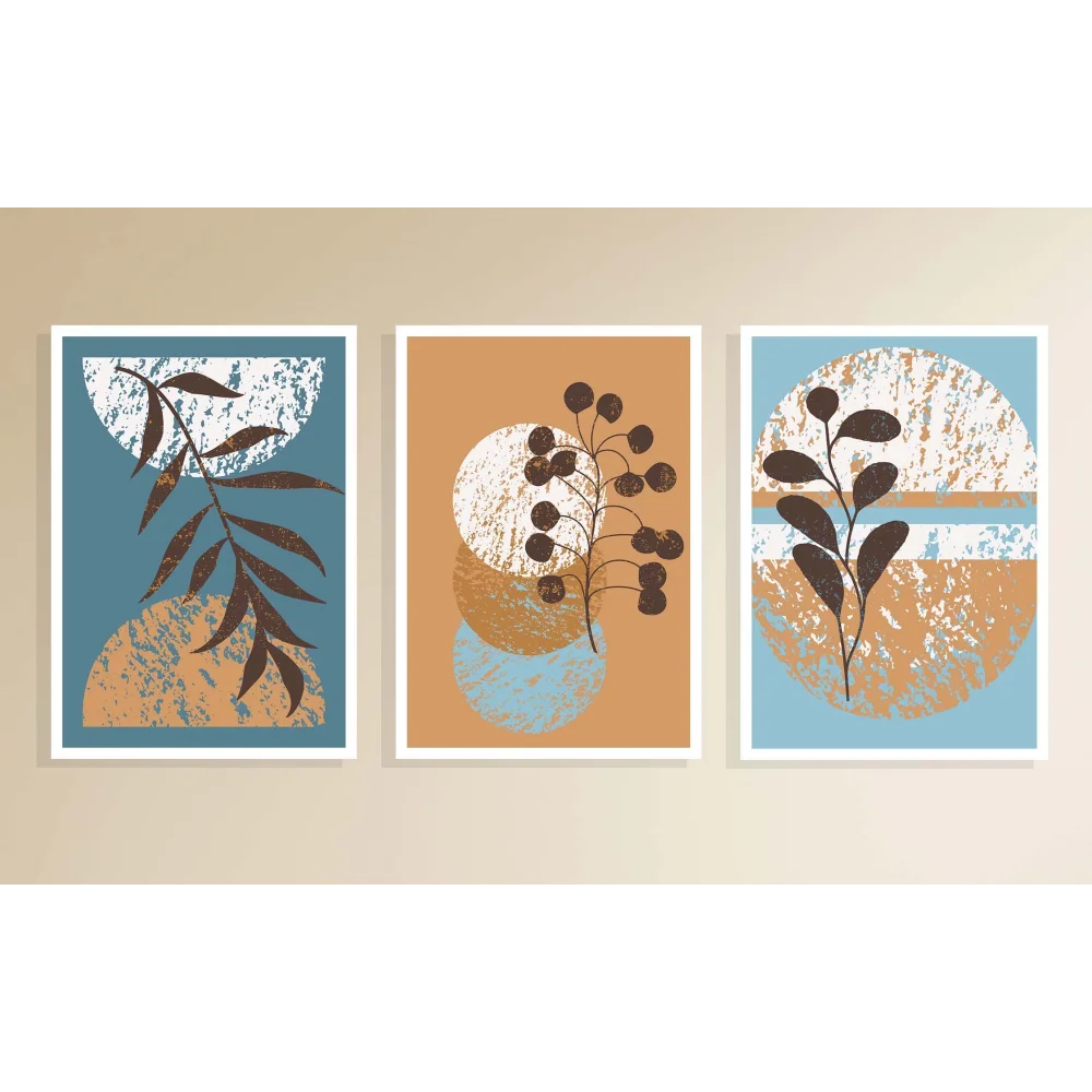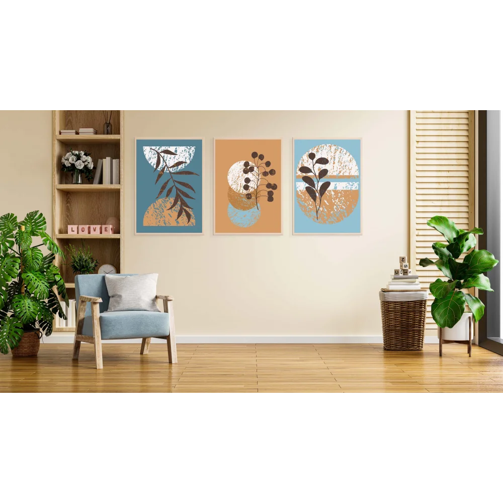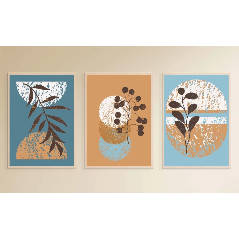 3'lü Dekoratif Çerçeveli Tablo Mavi , Ev Dekoru , Soyut Tablo , Ahşap Tablo
