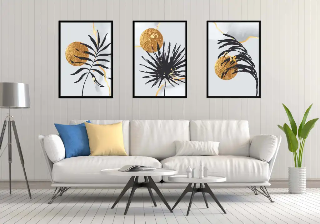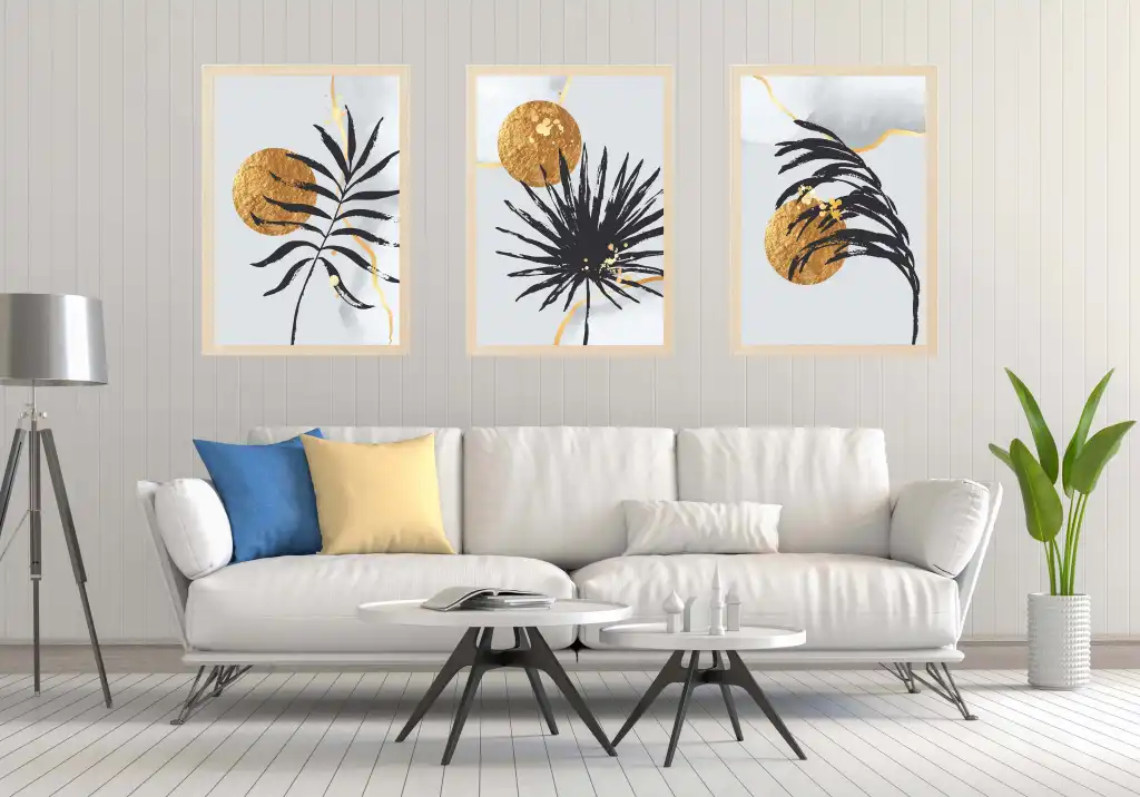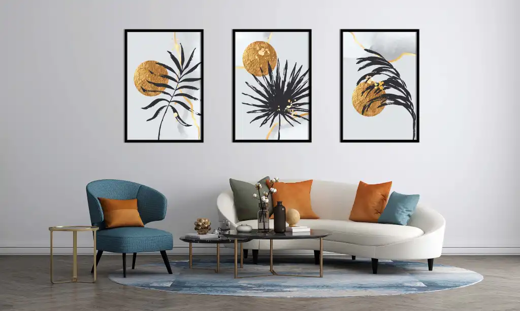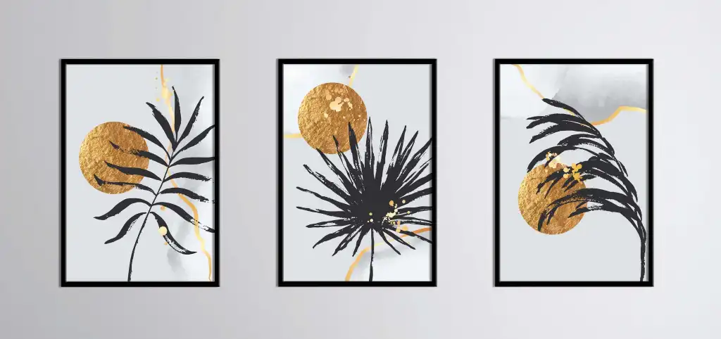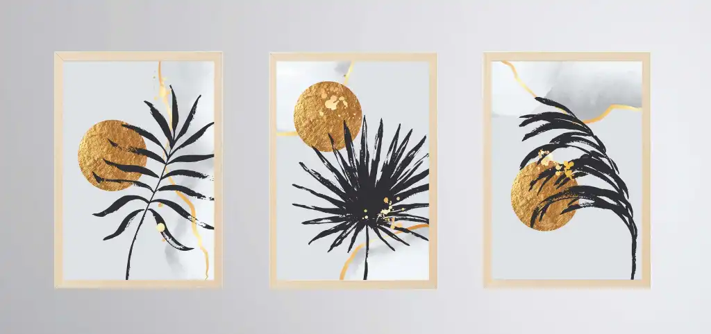 3'lü Dekoratif Güneş ve Tüy Çerçeveli Tablo , Ev Dekoru , Soyut Tablo , Ahşap Tablo
