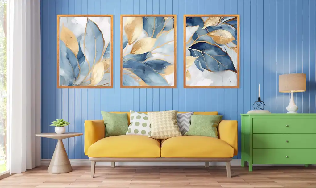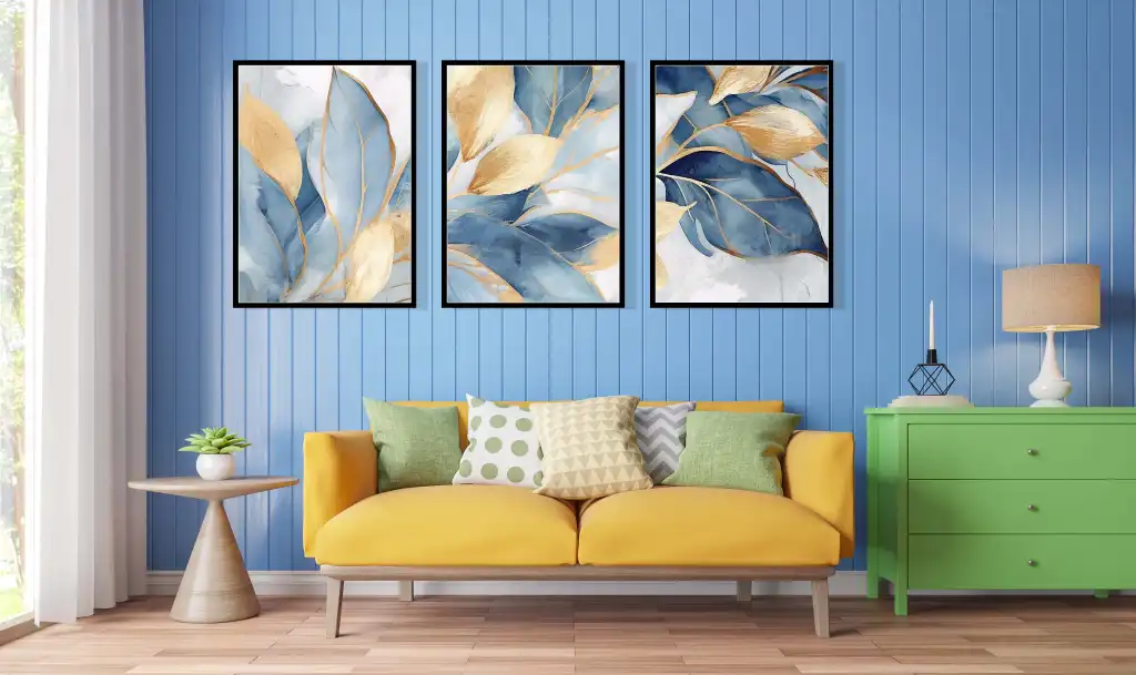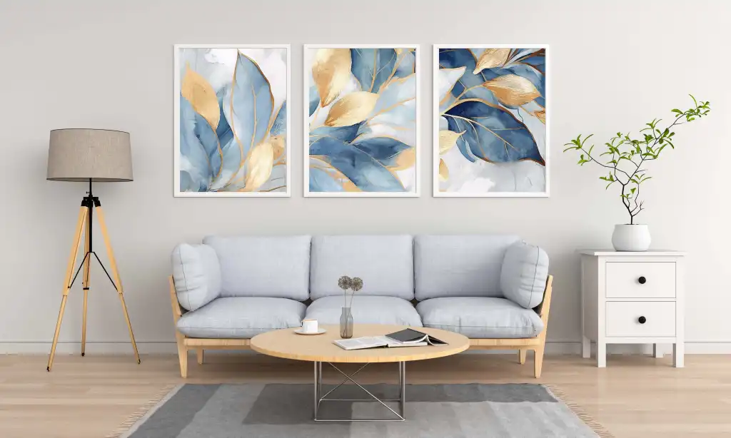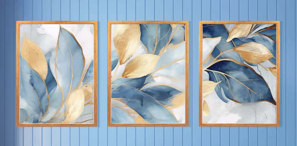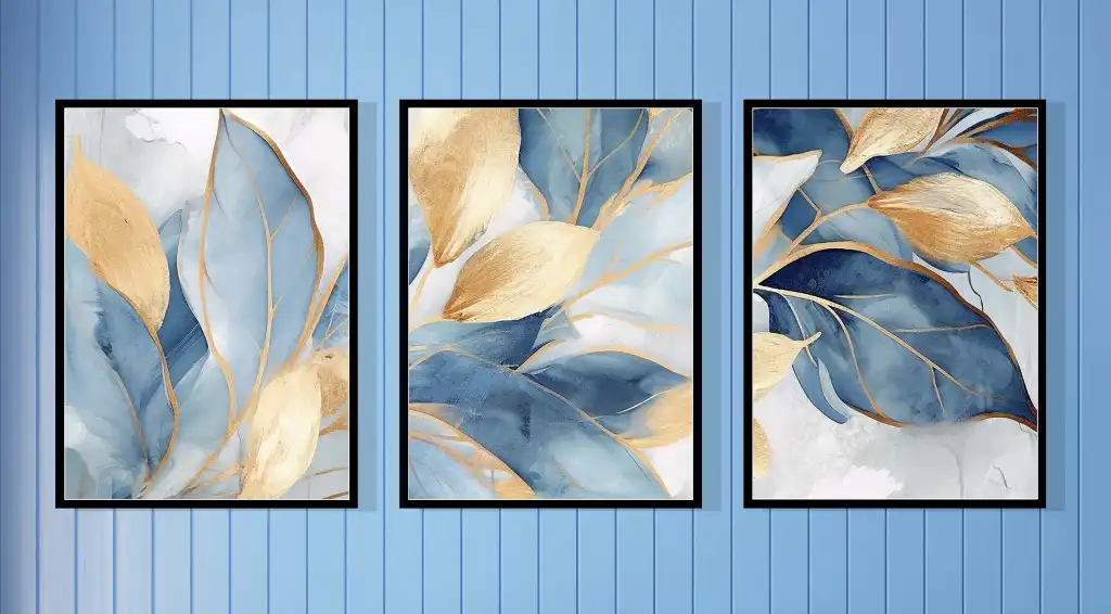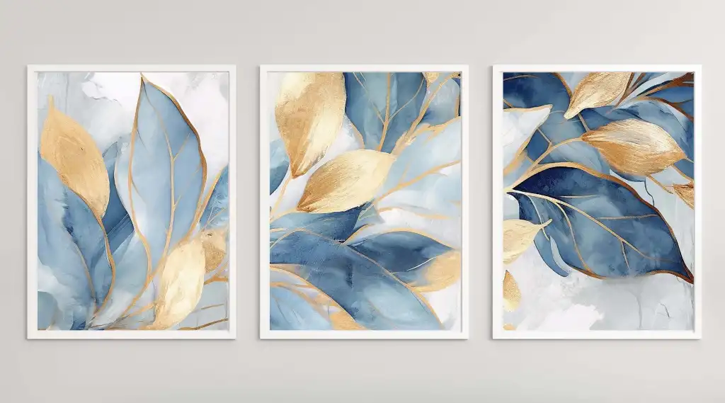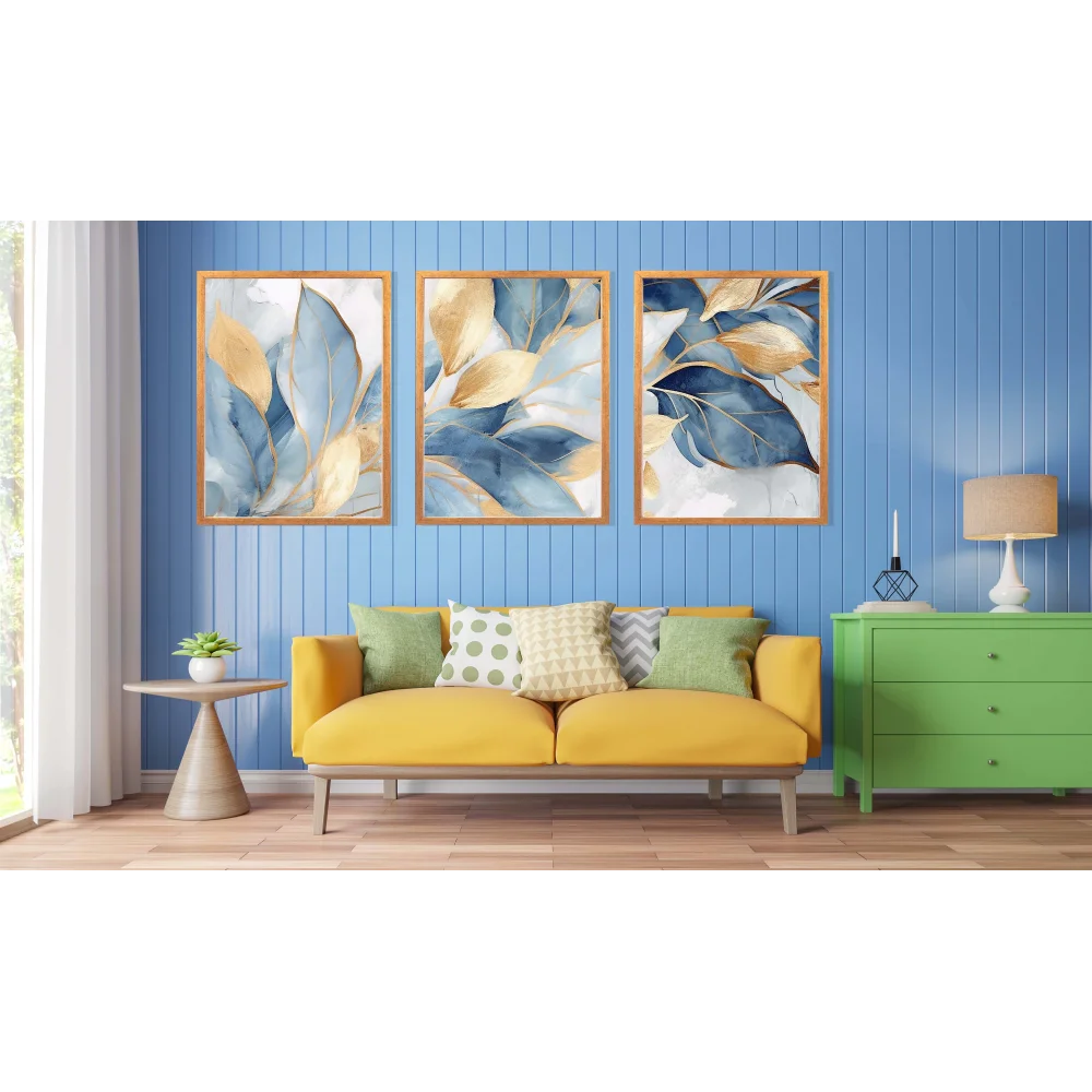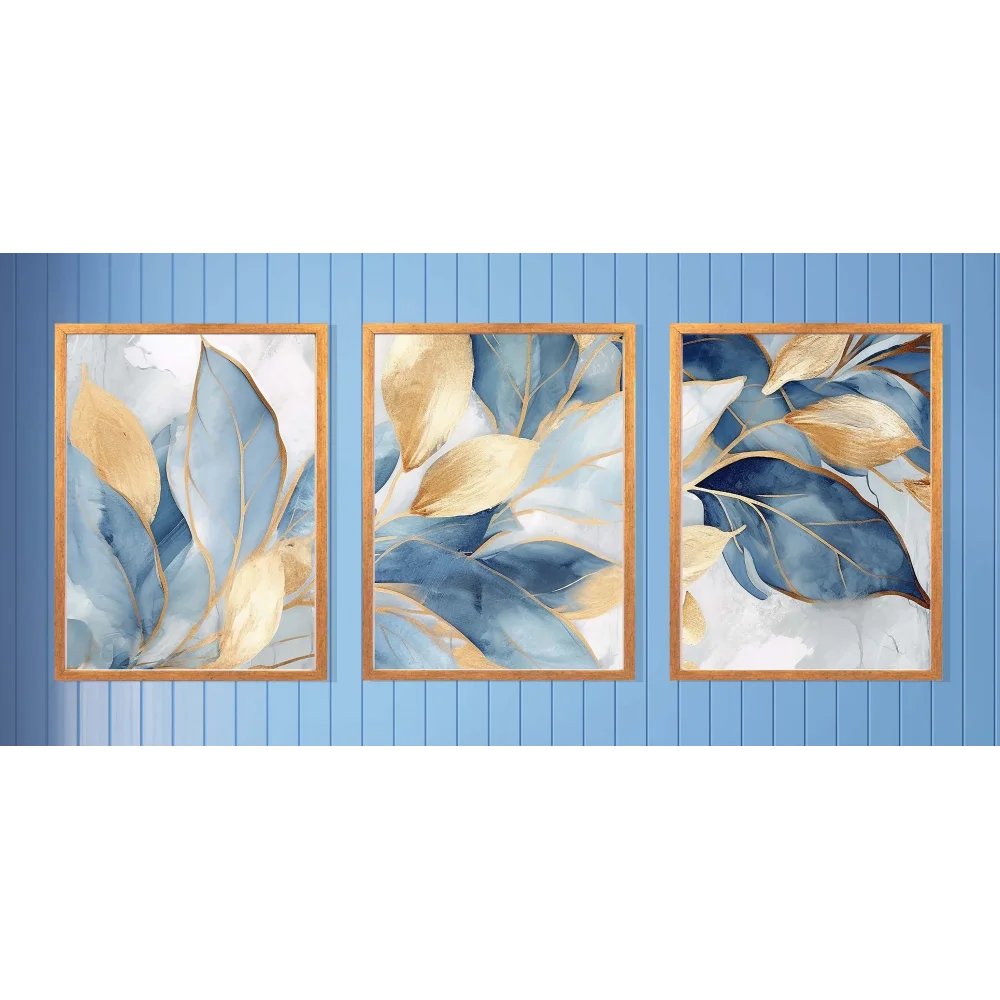 3'lü Gold Dekoratif Çerçeveli Tablo Life , Ev Dekoru , Soyut Tablo , Ahşap Tablo