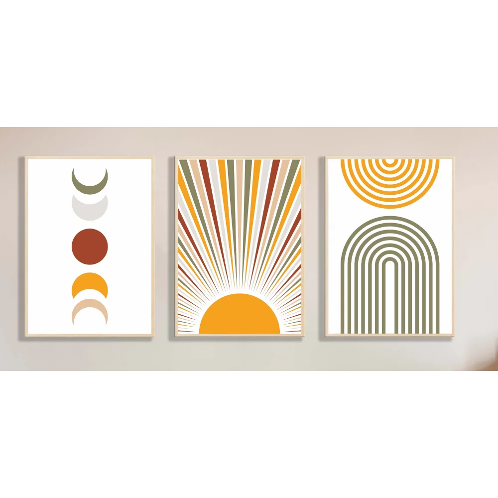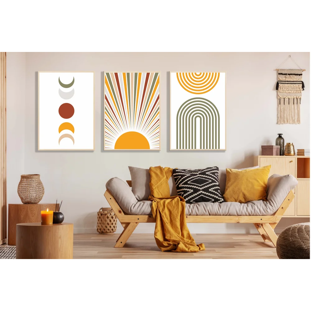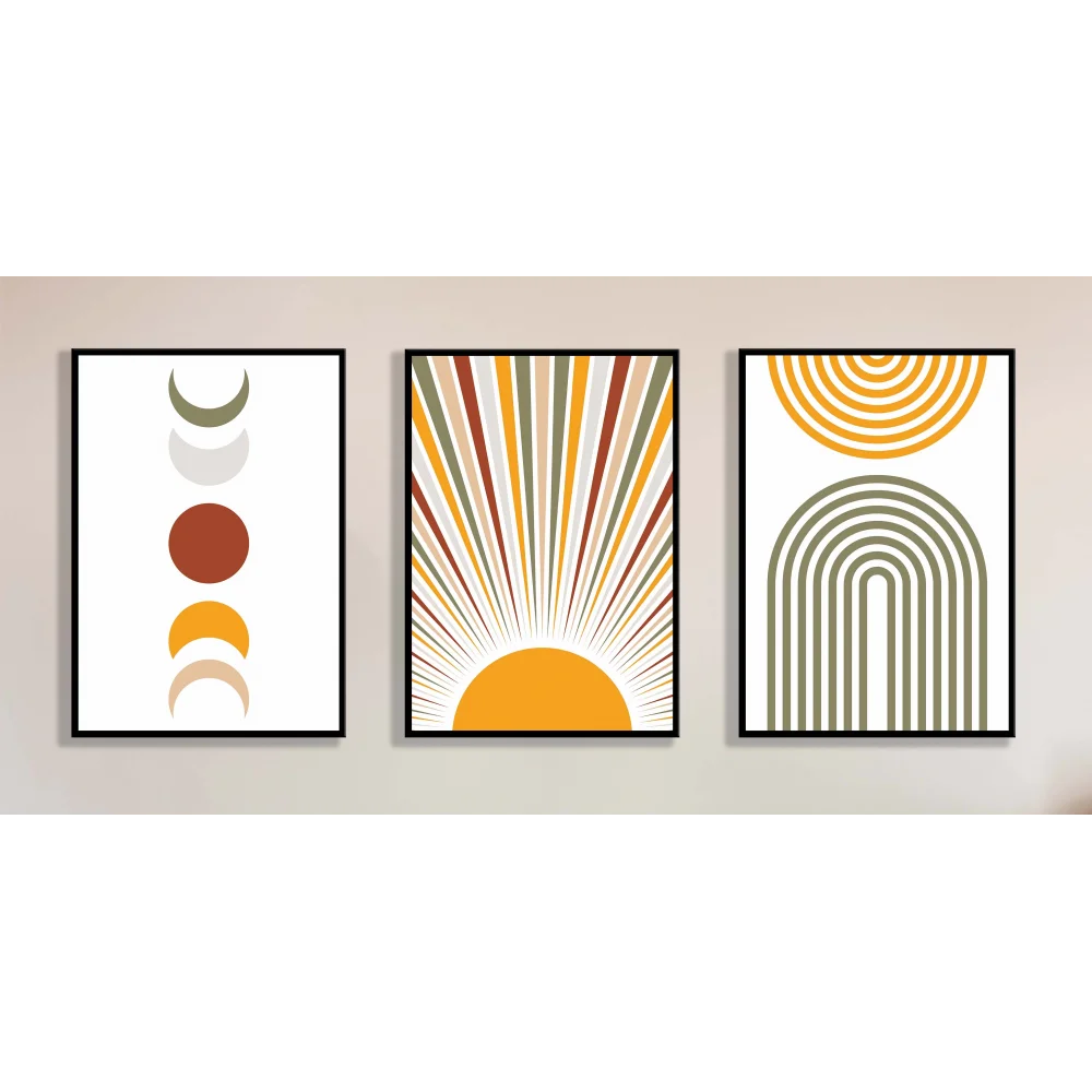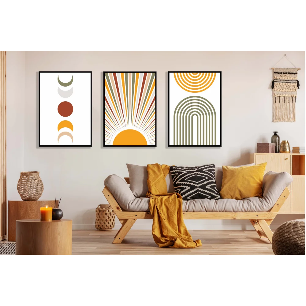 3'lü Güneş ve Ay Dekoratif Çerçeveli Tablo , Ev Dekoru , Soyut Tablo , Ahşap Tablo