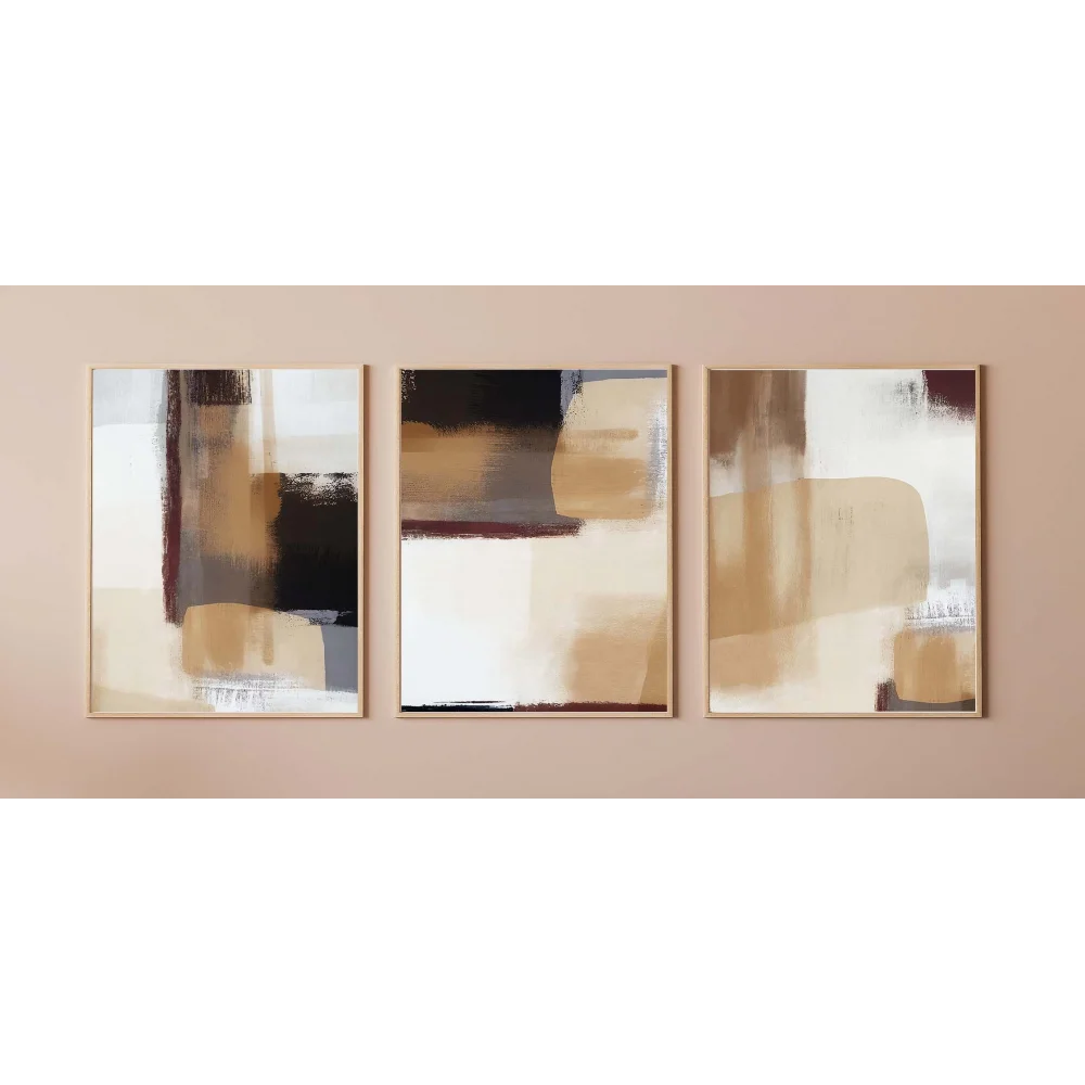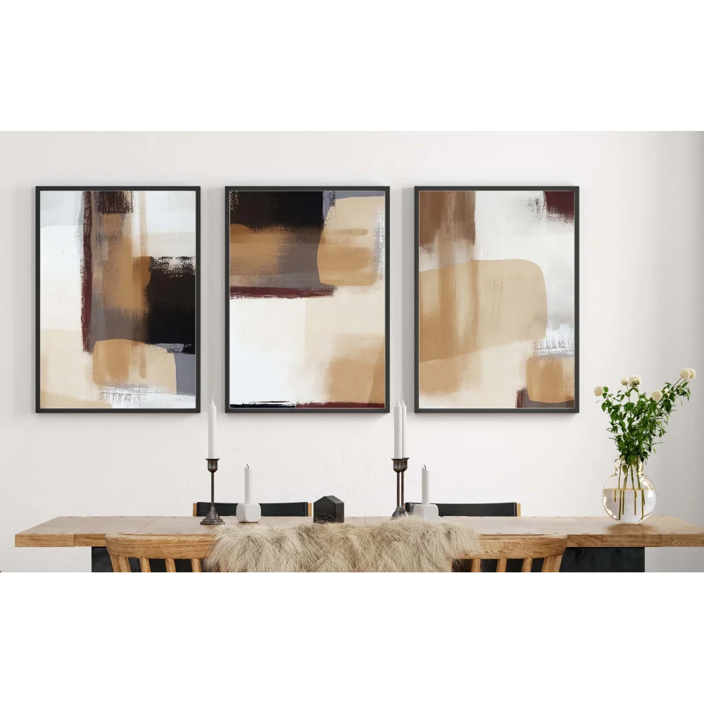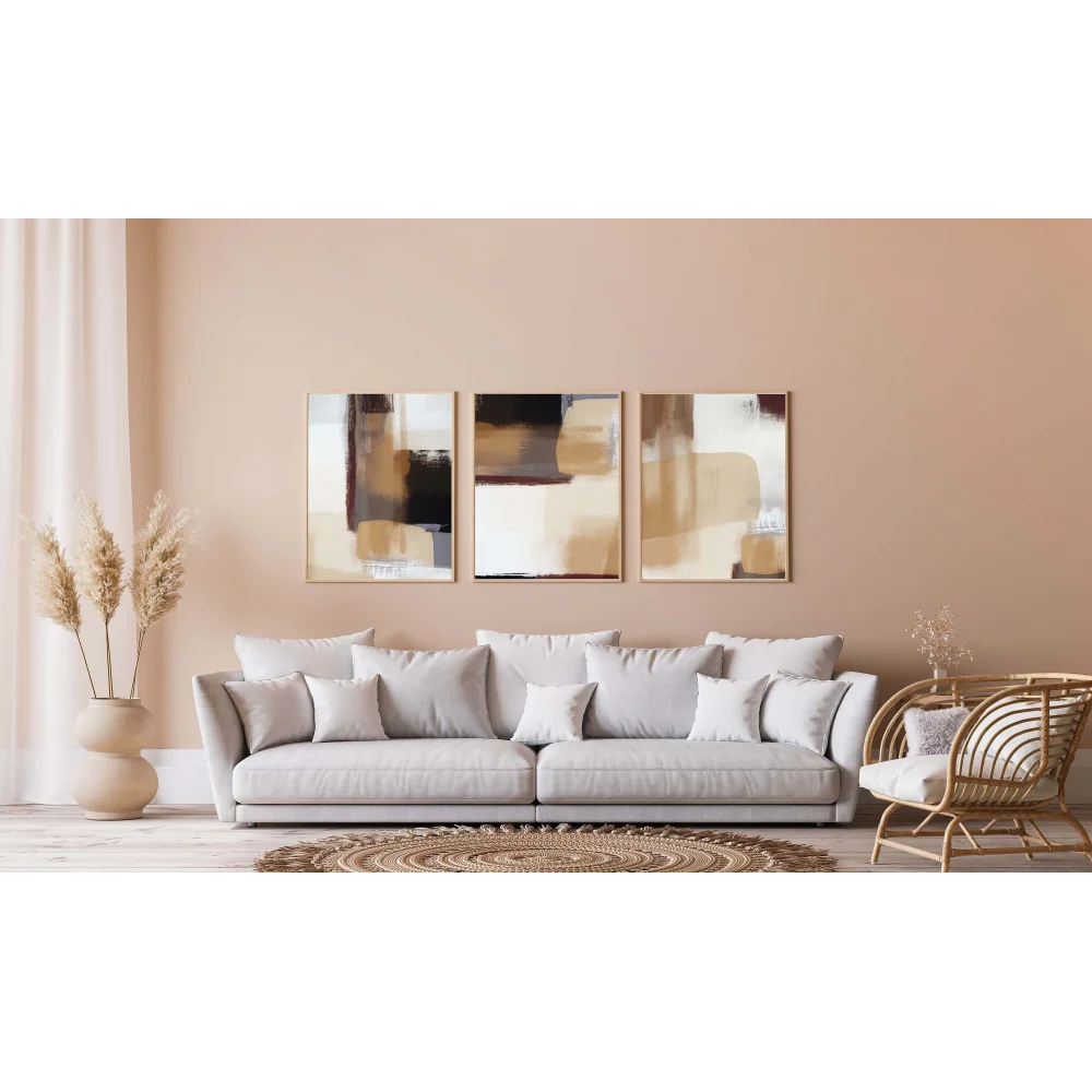 - 3'lü Krem, Soyut Çerçeveli Tablo Life , Ev Dekoru , Soyut Tablo , Ahşap Tablo