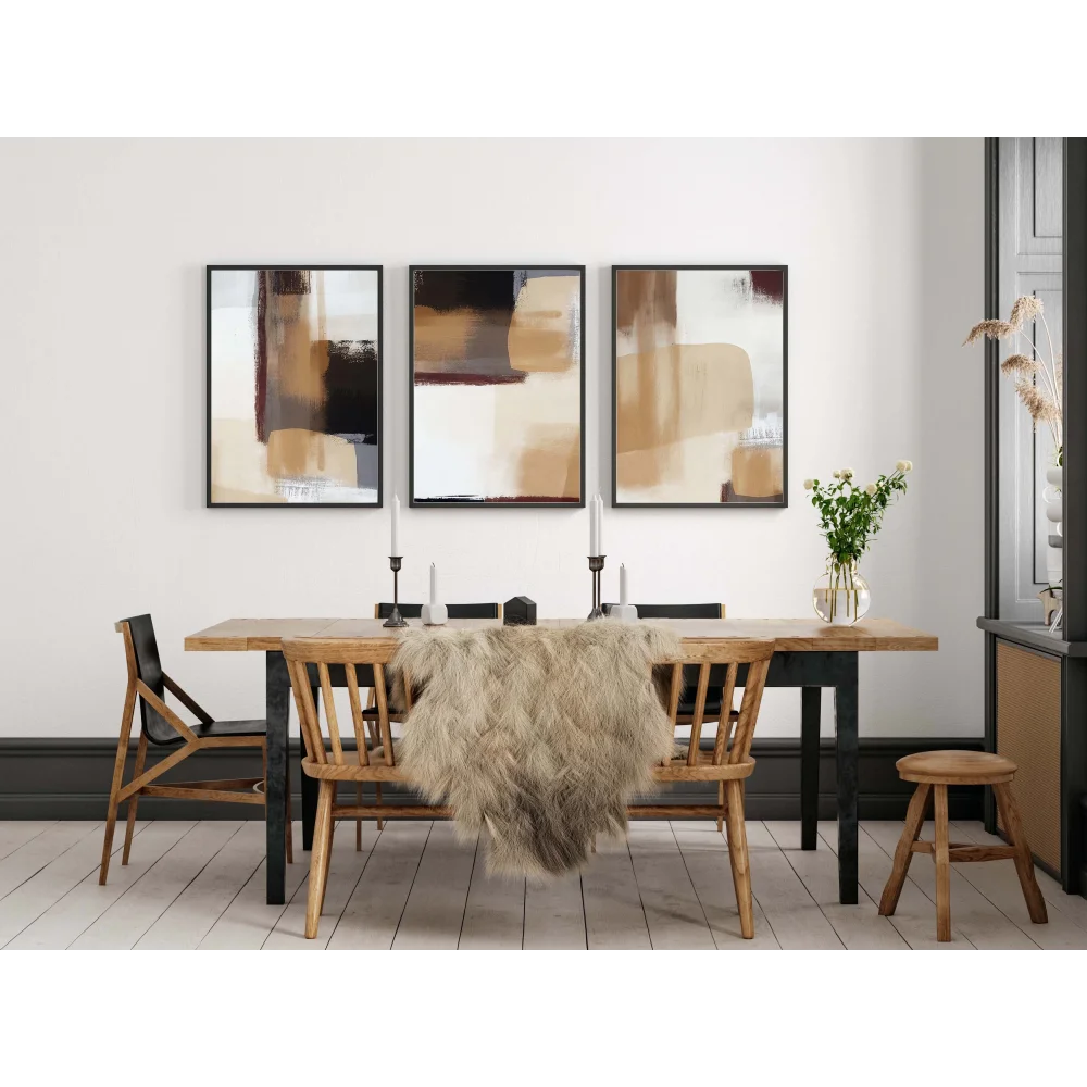 3'lü Krem, Soyut Çerçeveli Tablo Life , Ev Dekoru , Soyut Tablo , Ahşap Tablo