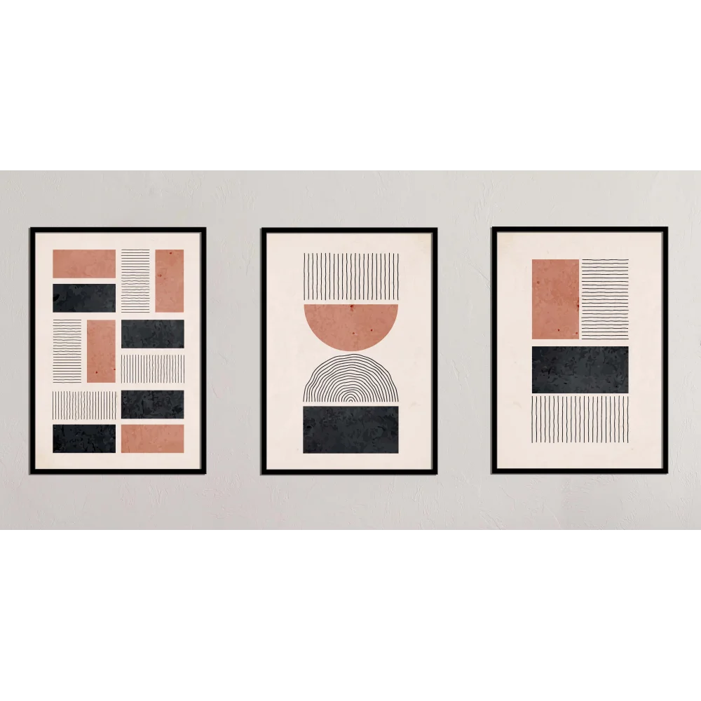 - 3'lü Pudra Siyah Çizgiler Çerçeveli Ahşap Tablo , Ev Dekoru , Soyut Tablo , Ahşap Tablo