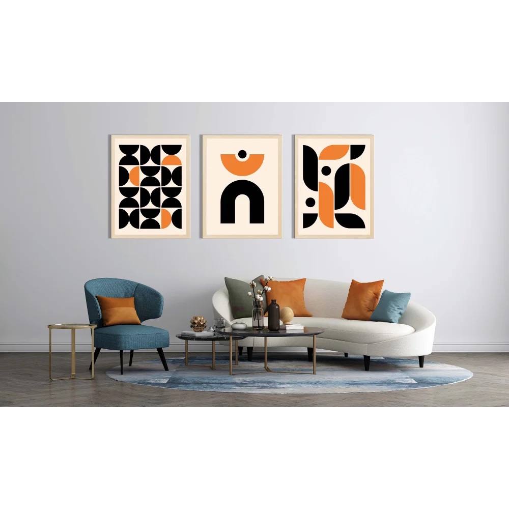 3'lü Turuncu Dekoratif Çerçeveli Ahşap Tablo , Ev Dekoru , Soyut Tablo , Ahşap Tablo