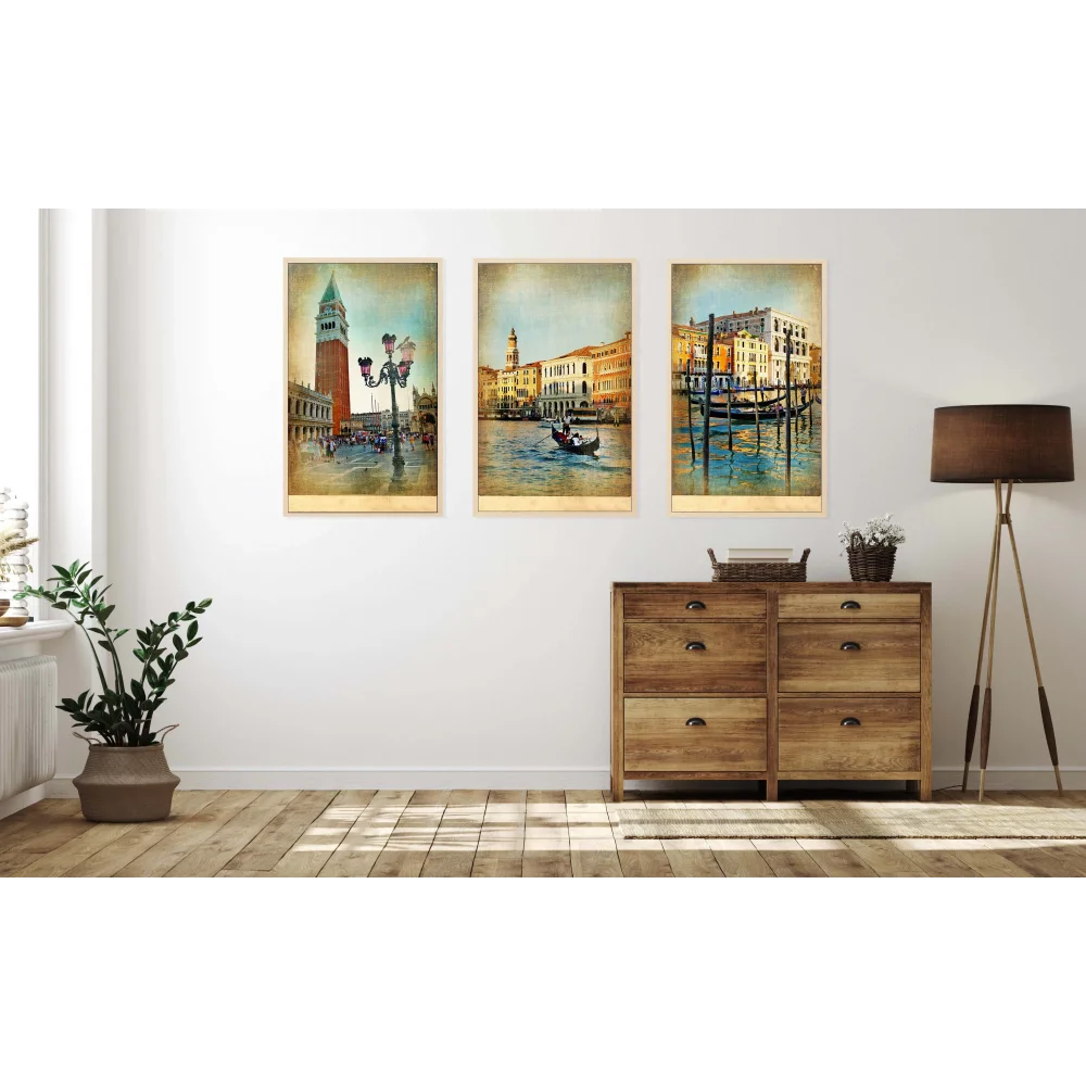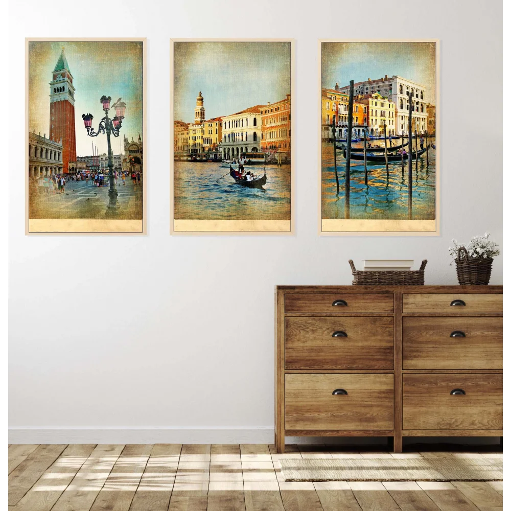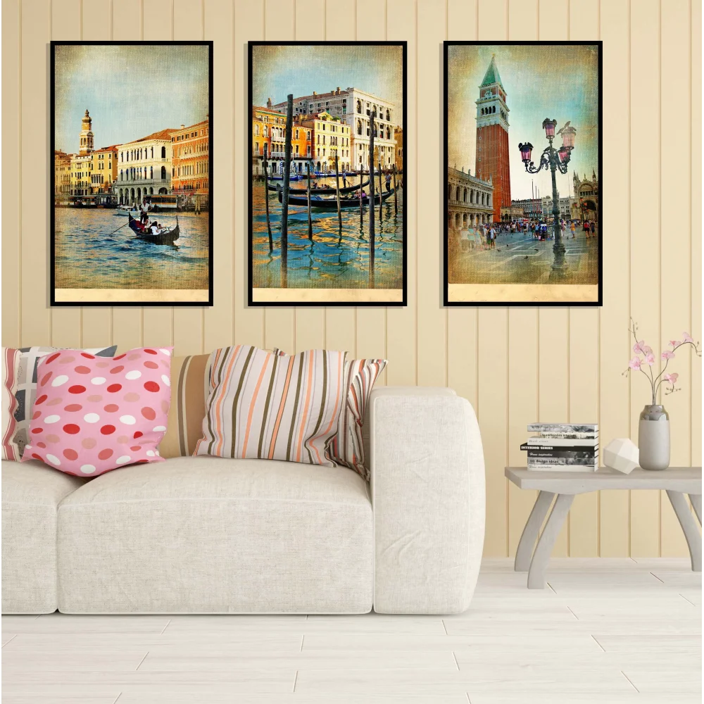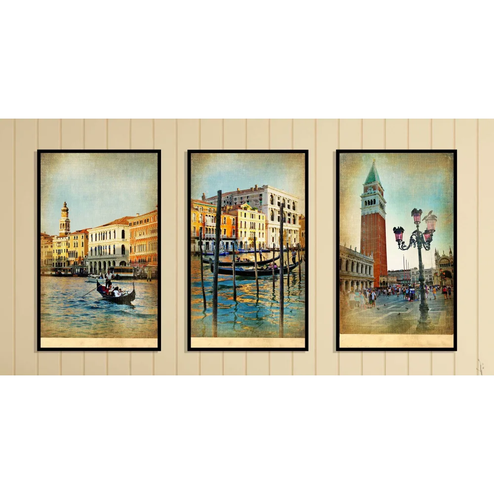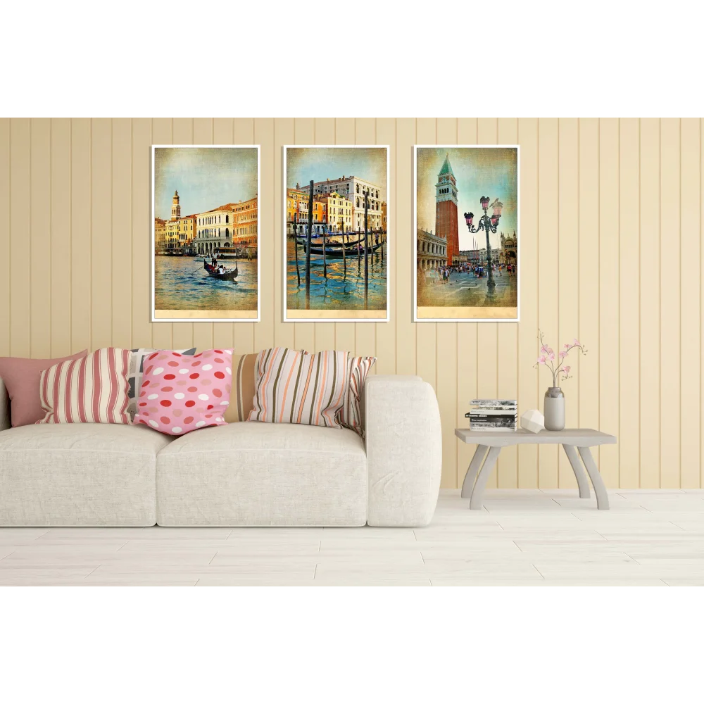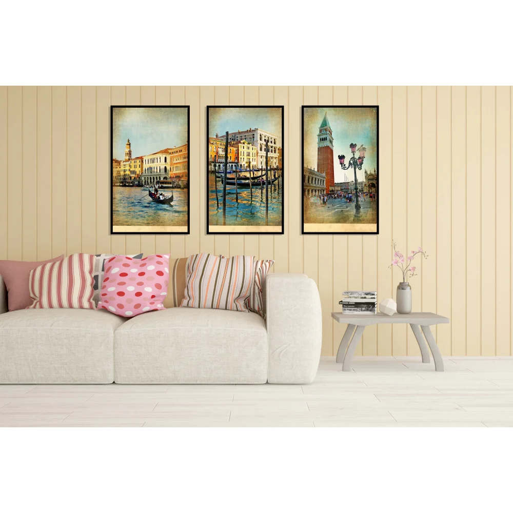 3'lü Venedik Çerçeveli Tablo Life , Ev Dekoru , Soyut Tablo , Ahşap Tablo
