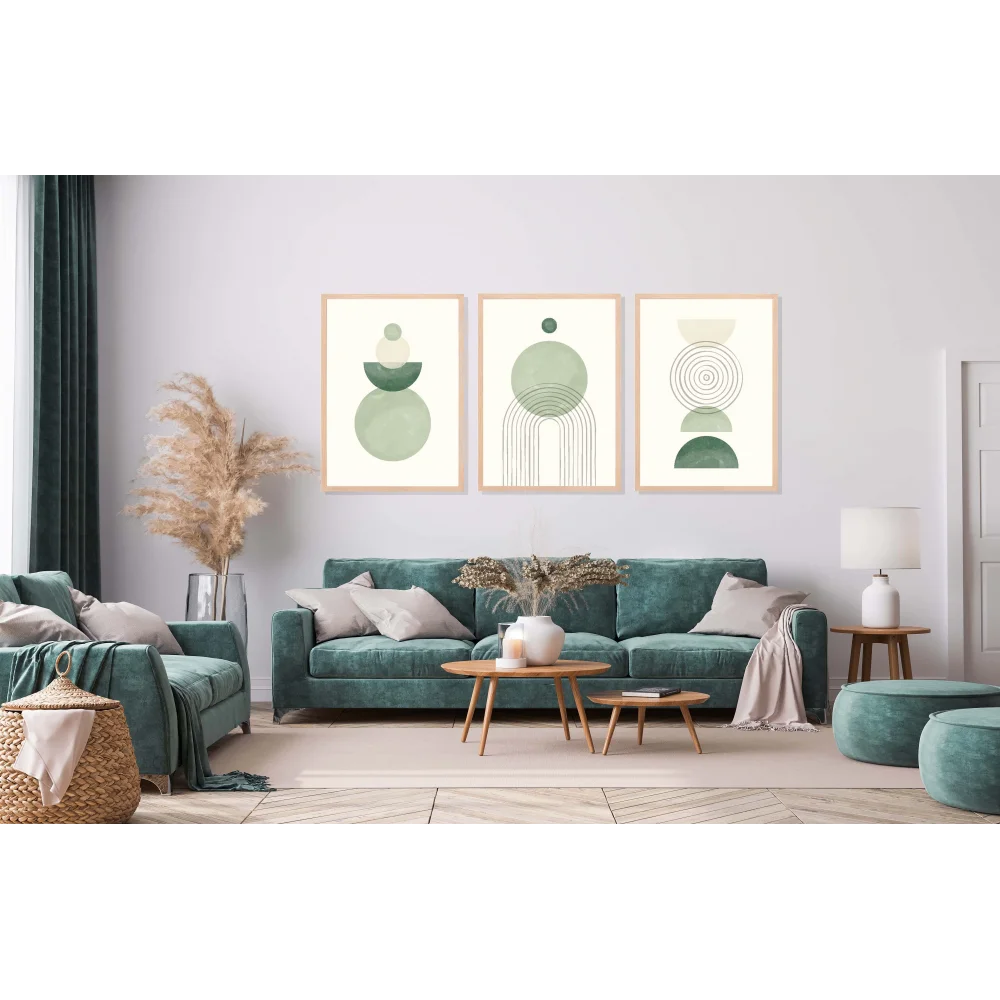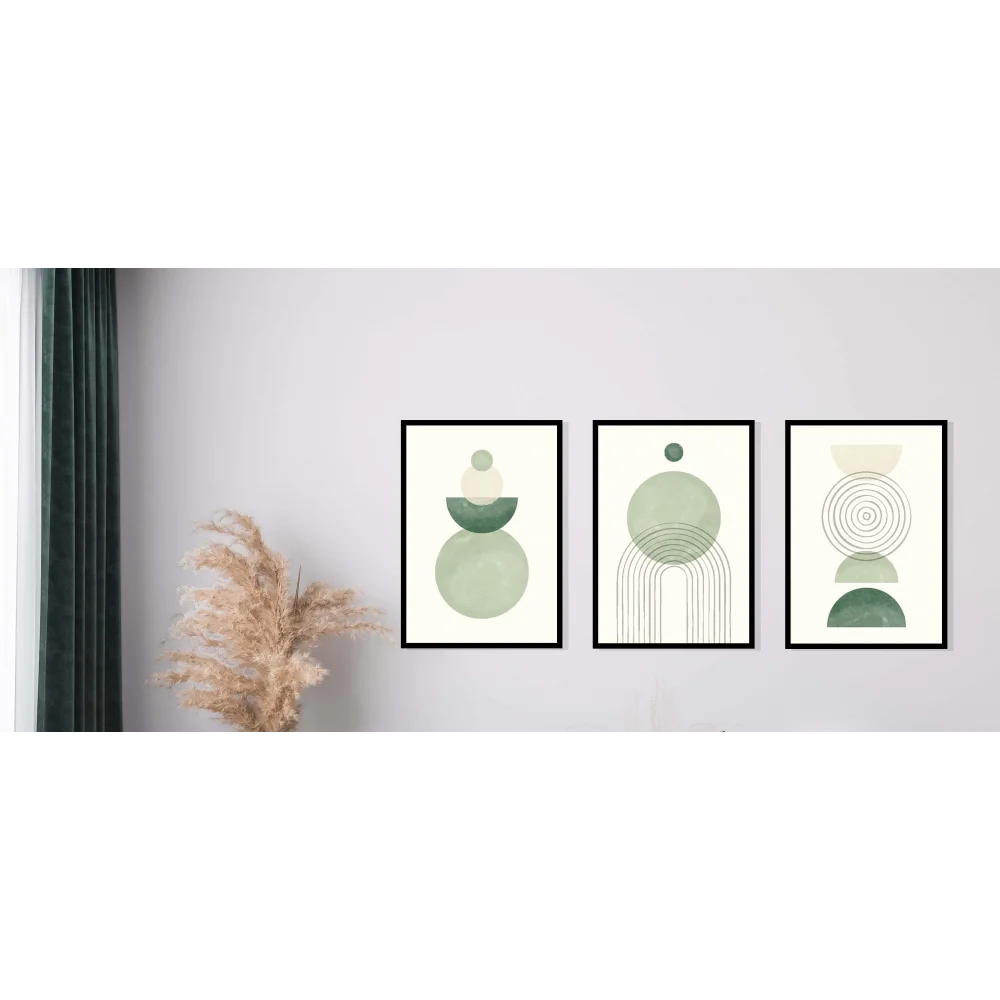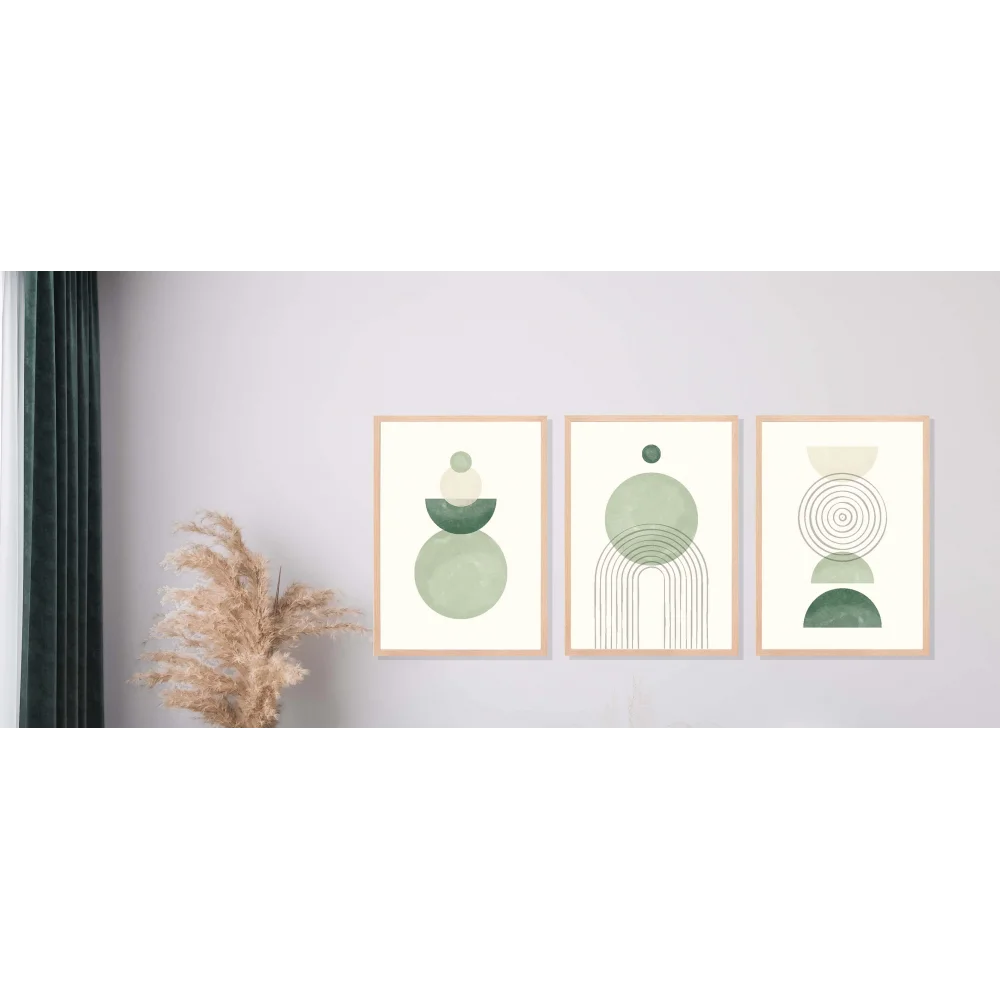 3'lü Yeşil Soyut Çerçeveli Ahşap Tablo , Ev Dekoru , Soyut Tablo , Ahşap Tablo