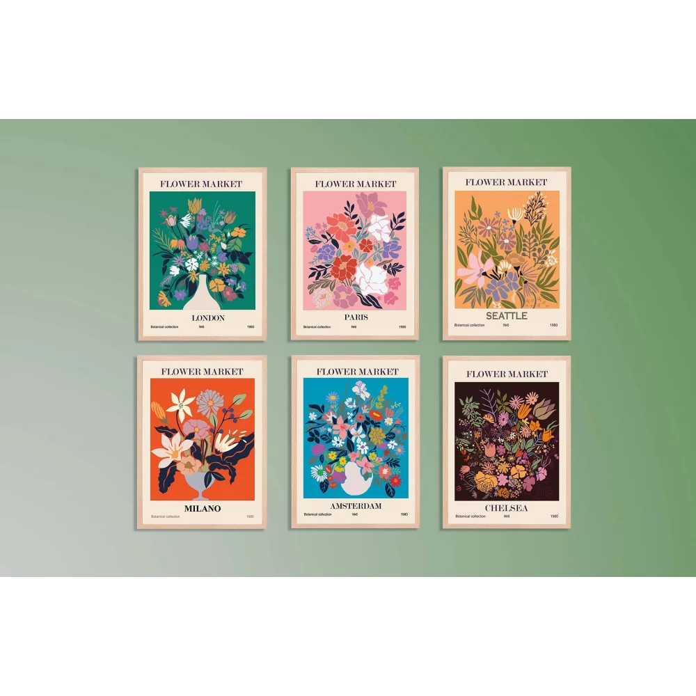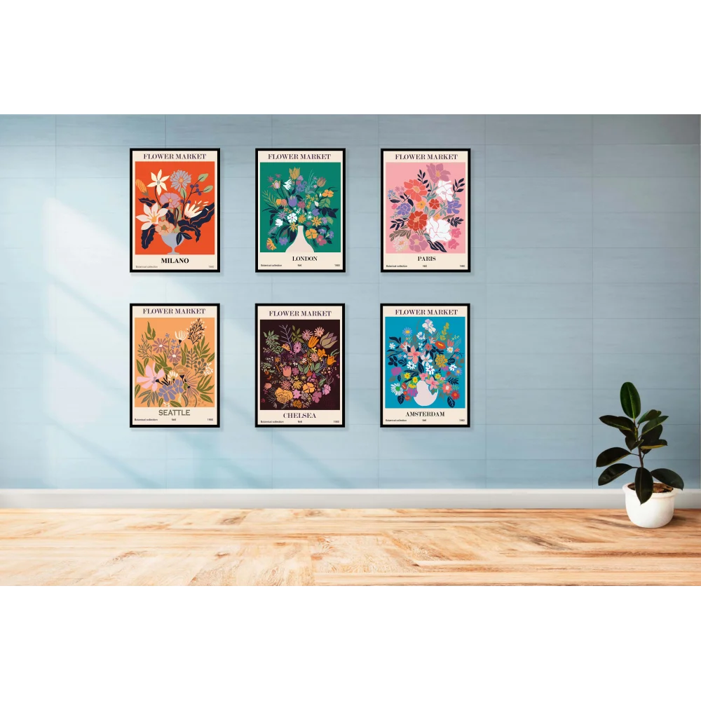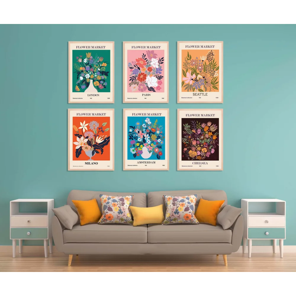 6'lı Dekoratif Flowers Çerçeveli Tablo , Ev Dekoru , Soyut Tablo , Ahşap Tablo