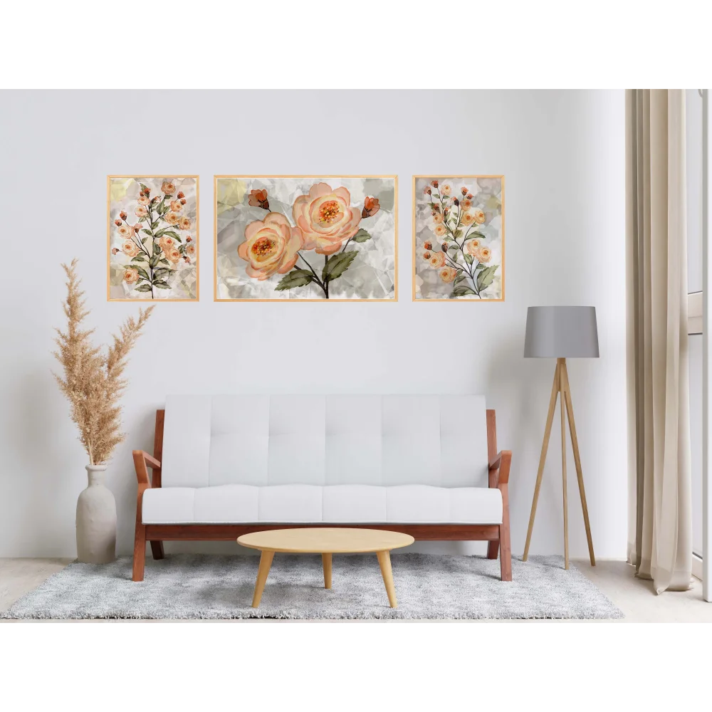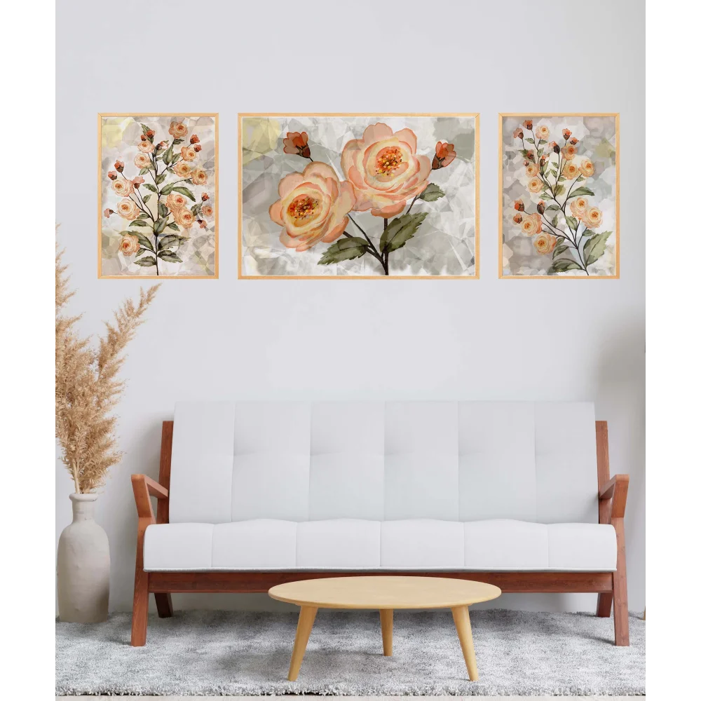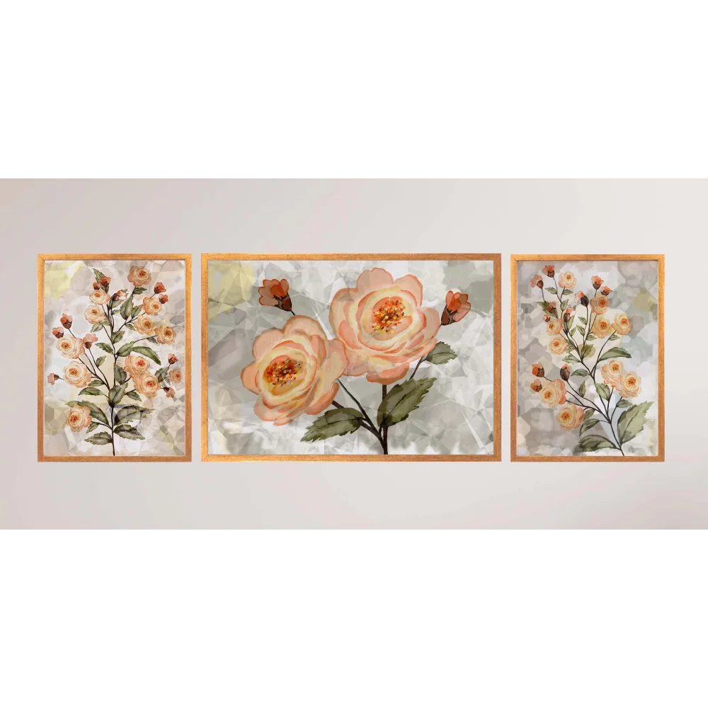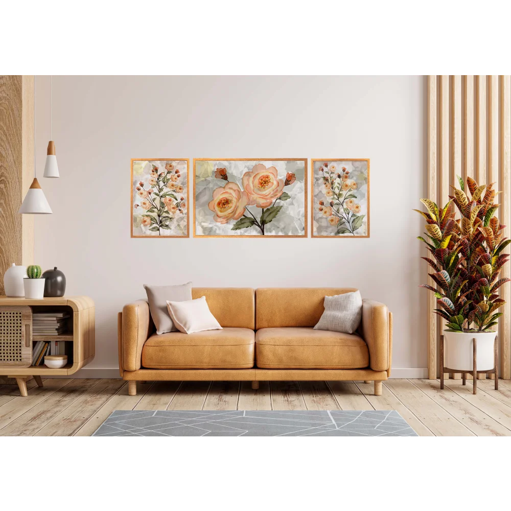 Açan Güller Çerçeveli Ahşap Tablo Seti, 3 Parça, Duvar Tablosu