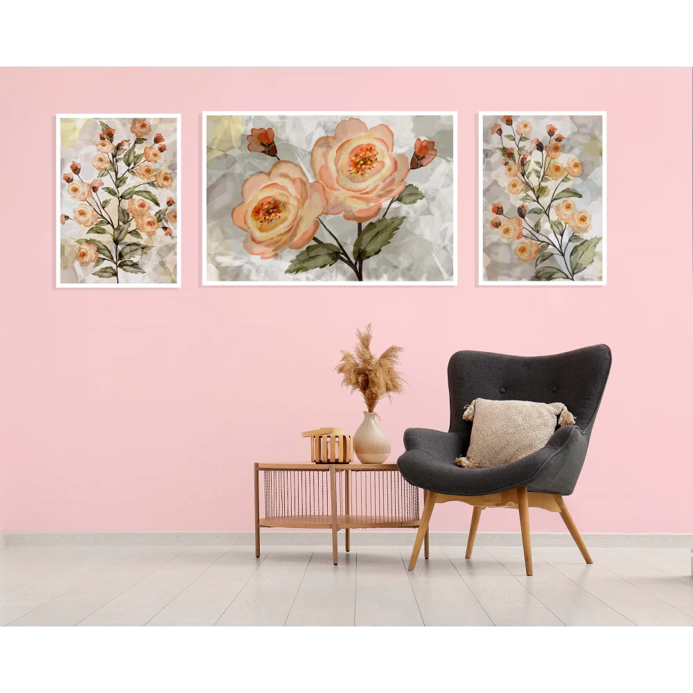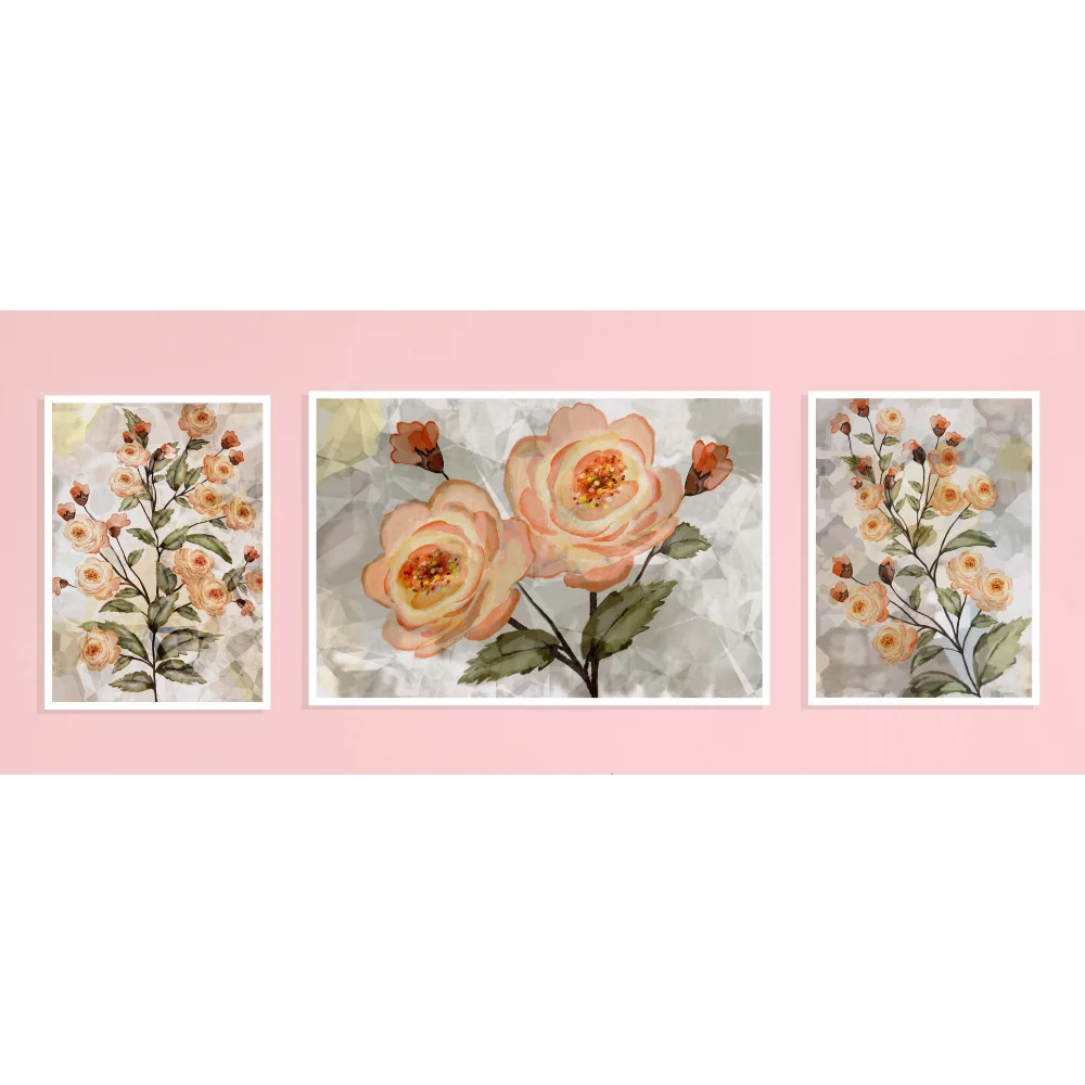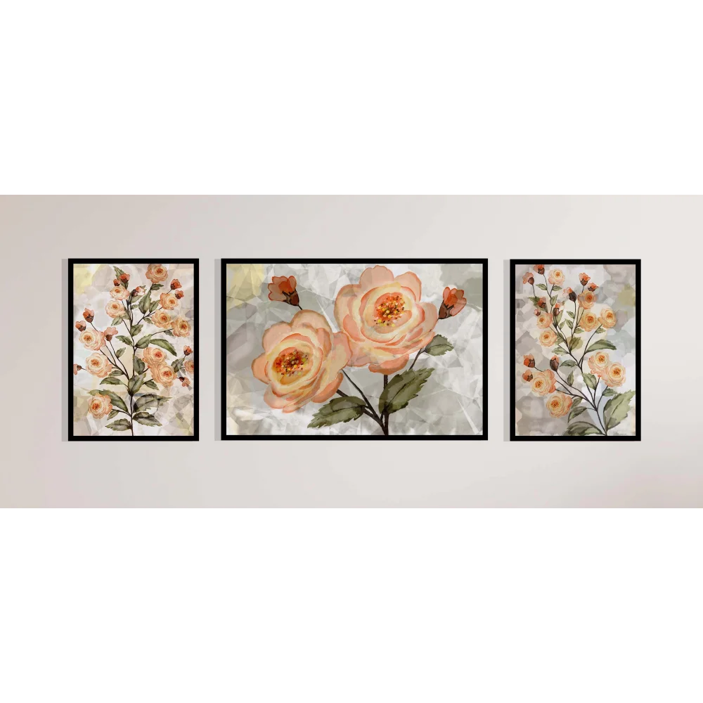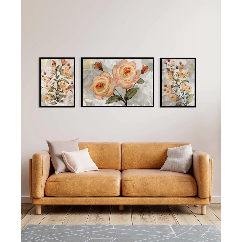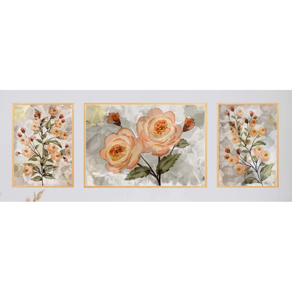 Açan Güller Çerçeveli Ahşap Tablo Seti, 3 Parça, Duvar Tablosu