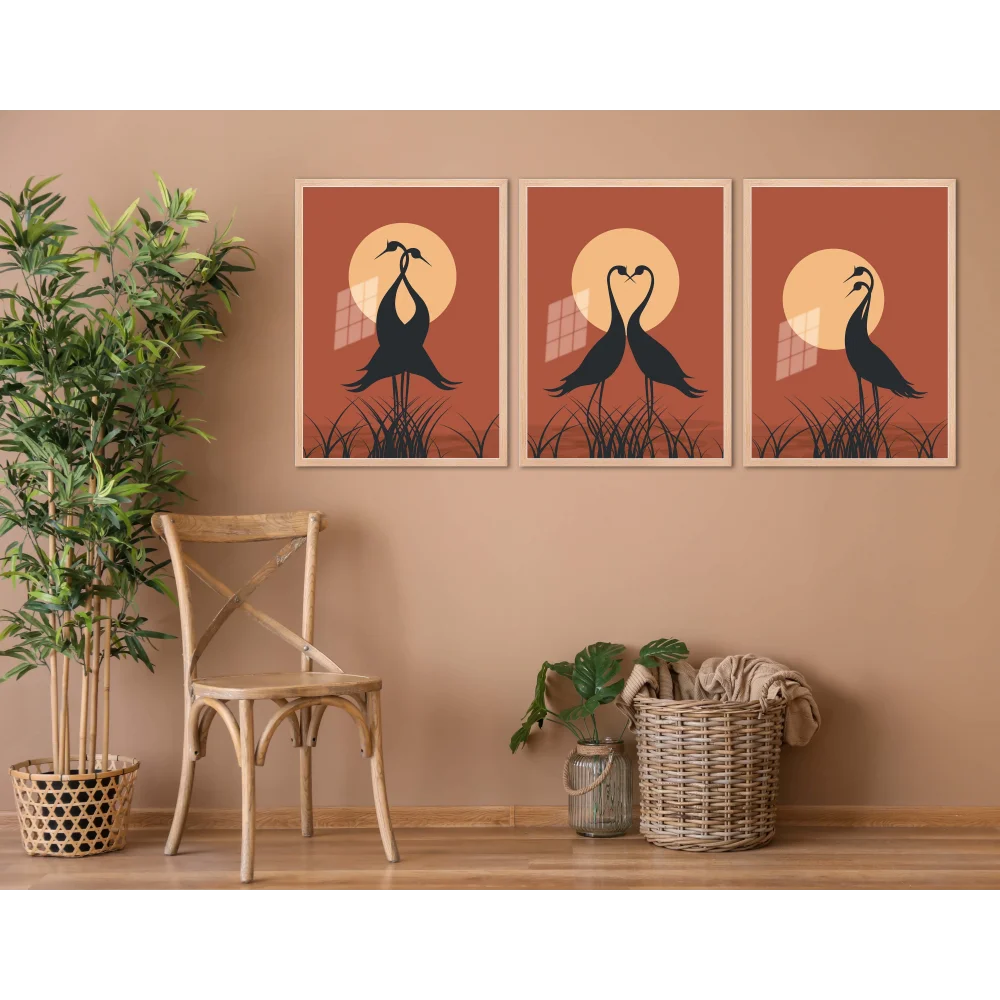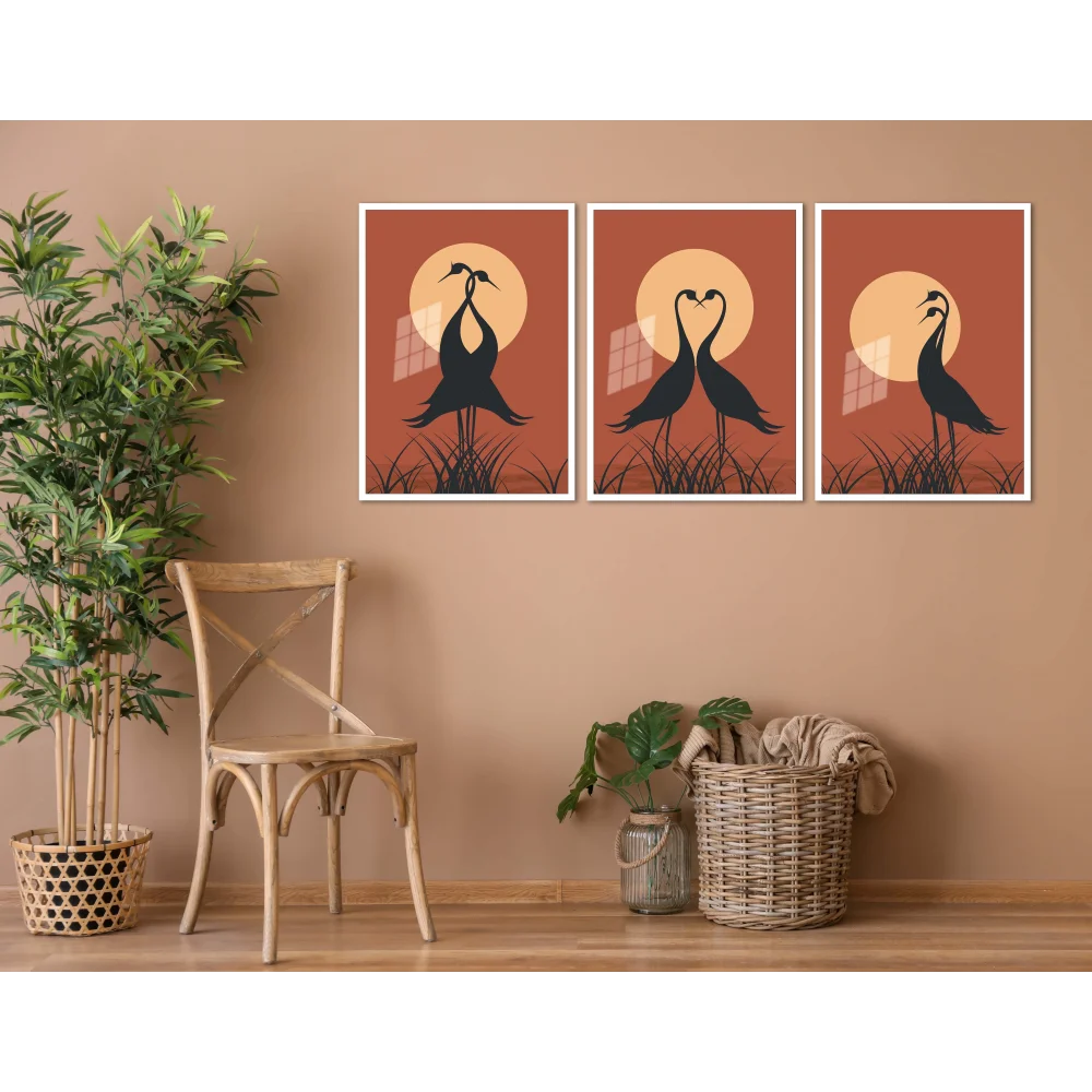 Bestablo 3 Parça Çerçeveli Aşık Kuşlar Ahşap Tablo Seti Bestablo