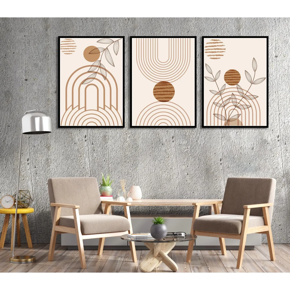 Bestablo 3 Parça Çerçeveli Brown Boho Ahşap Tablo Seti Bestablo