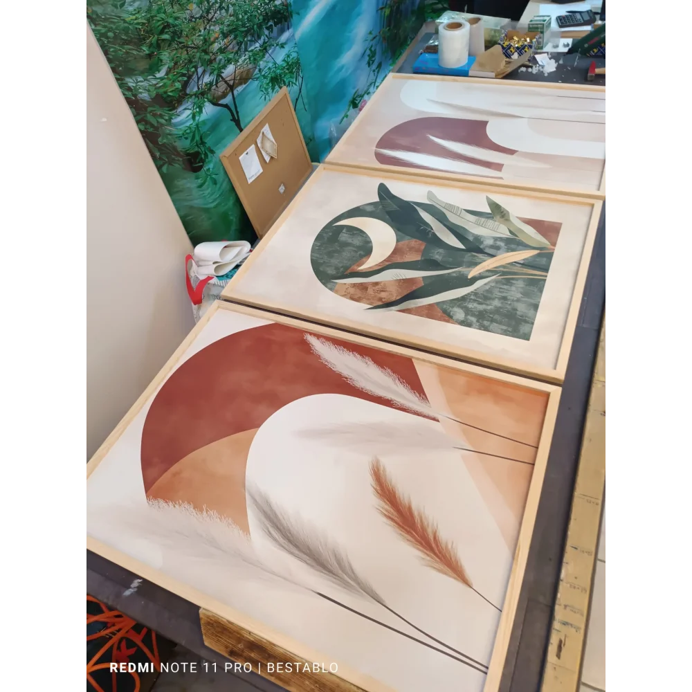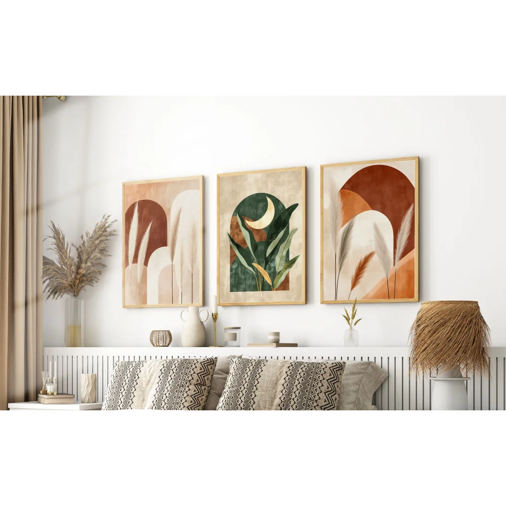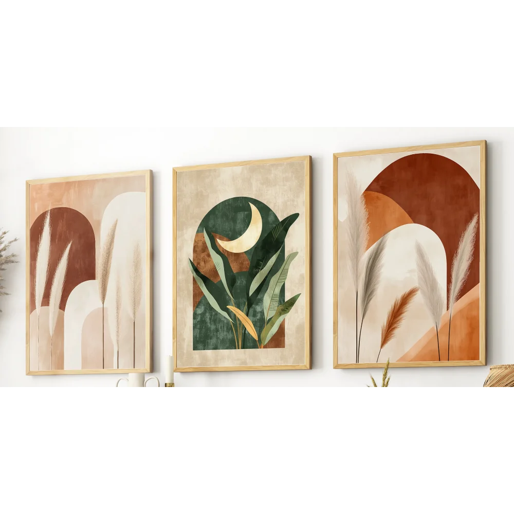 Bestablo 3 Parça Çerçeveli Dekoratif Boho Ahşap Tablo Seti, Ev Dekoru Bestablo