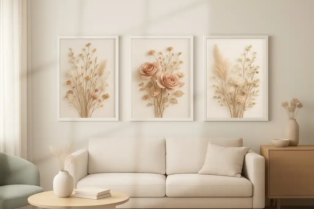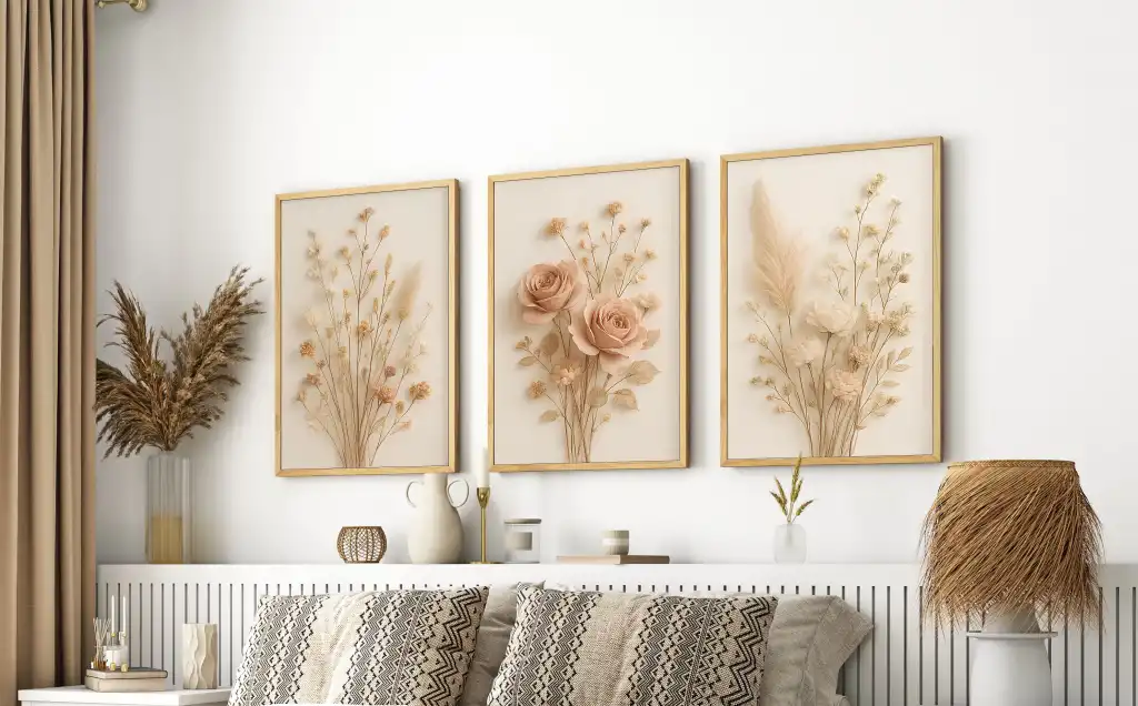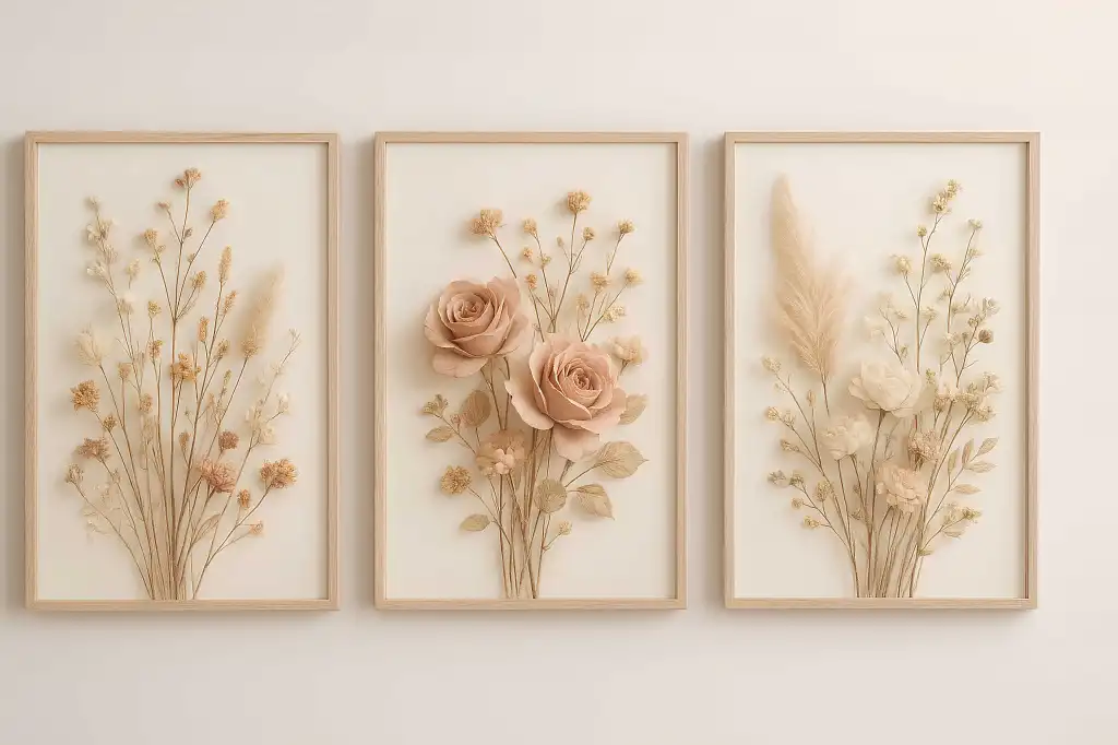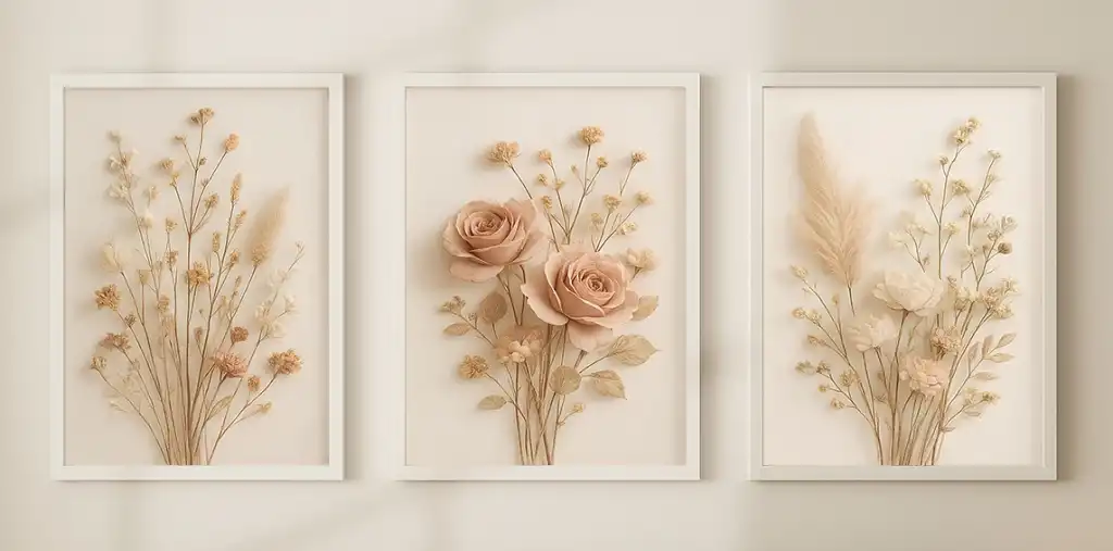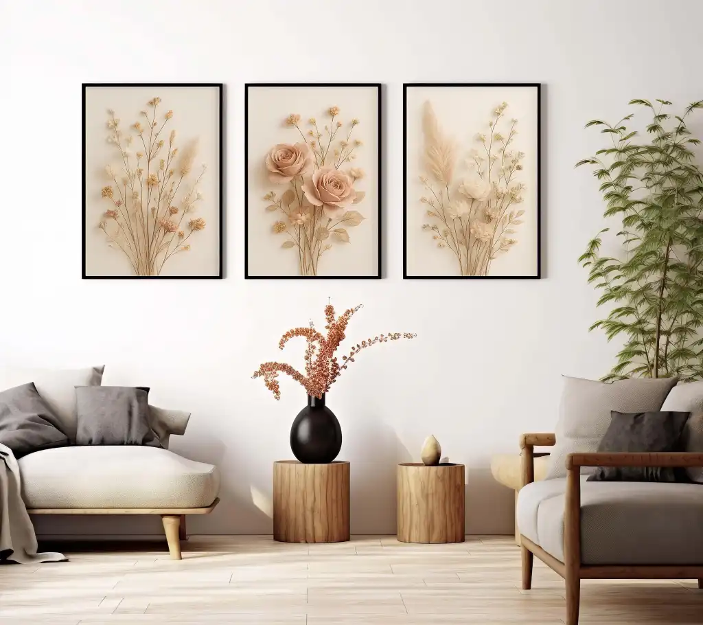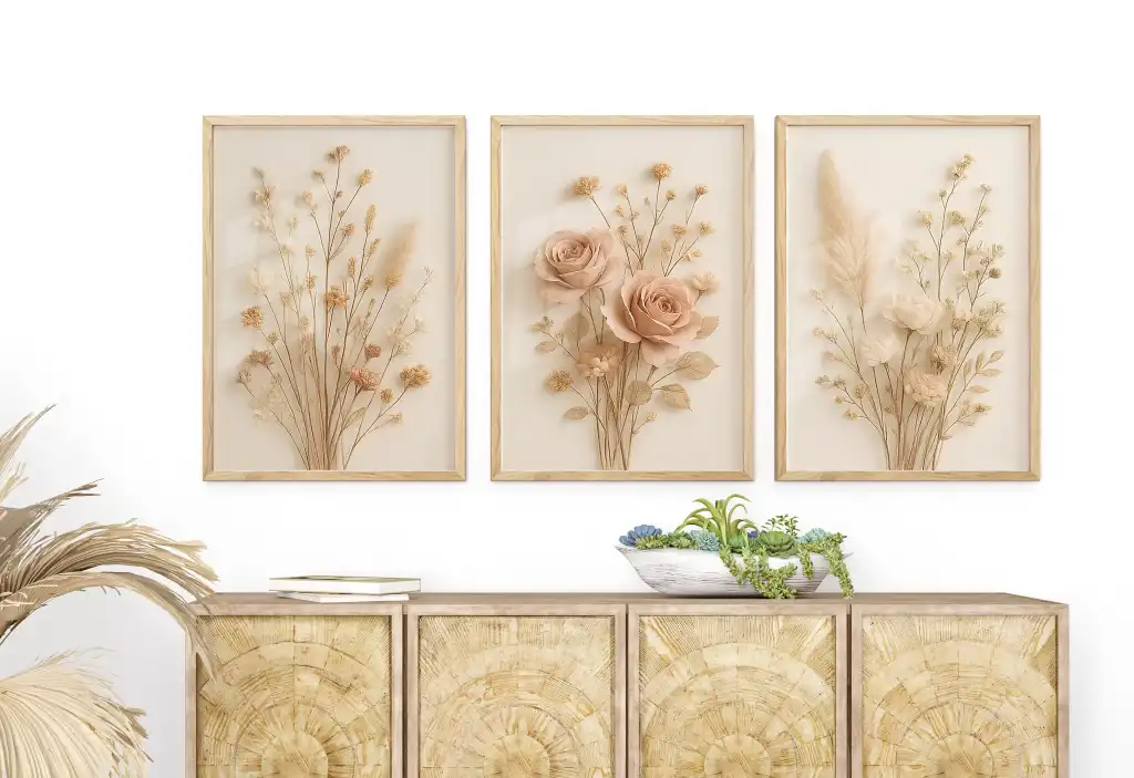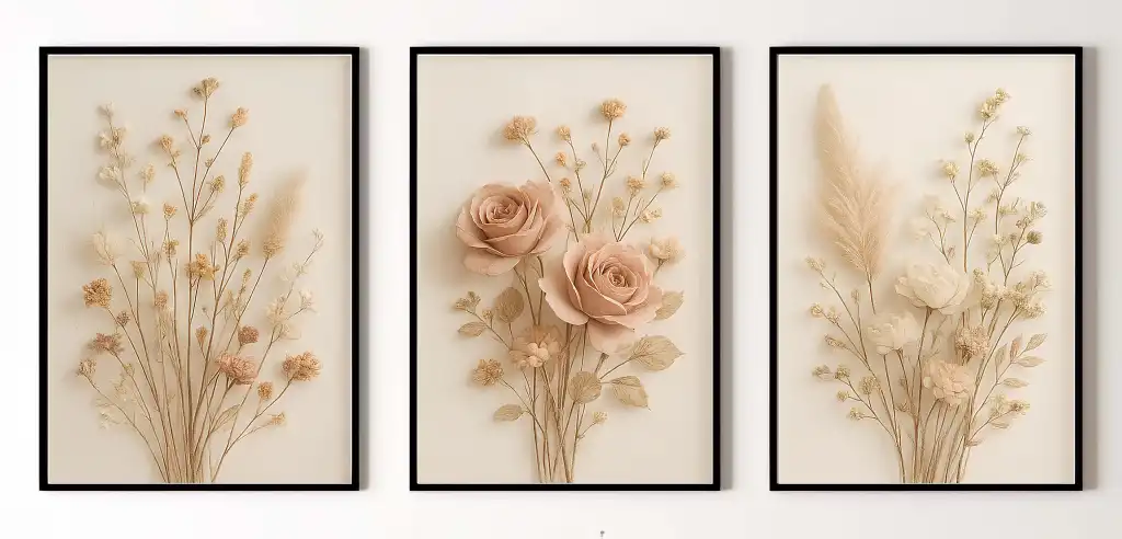 Bestablo 3 Parça Çerçeveli Dekoratif Çiçekler Ahşap Tablo Seti, Ev Dekoru Bestablo