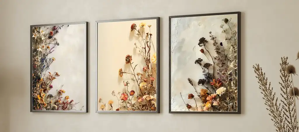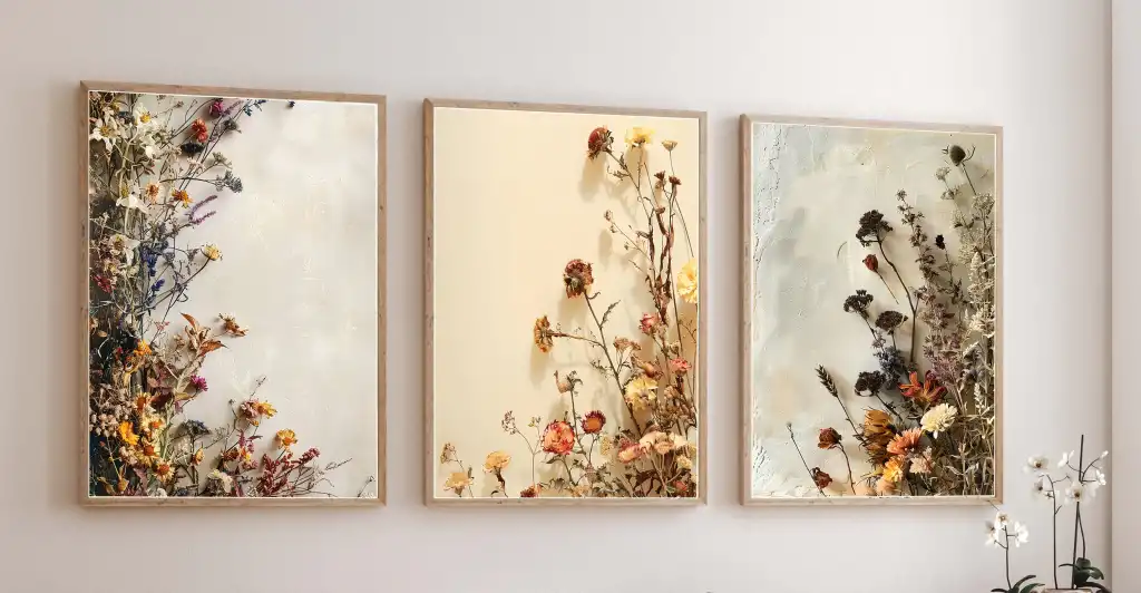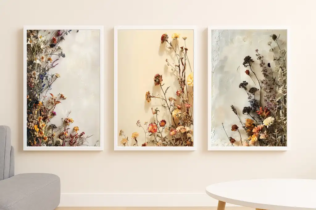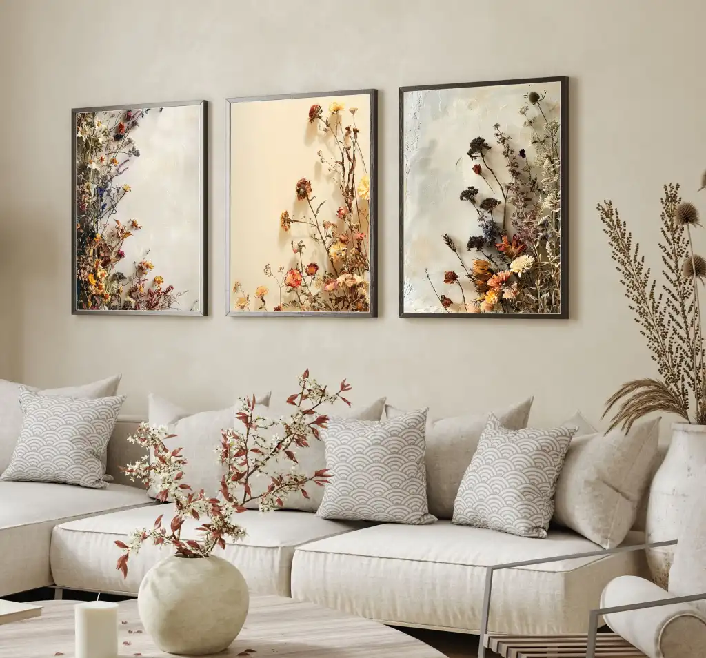 Bestablo 3 Parça Çerçeveli Dekoratif Renkli Çiçekler Ahşap Tablo Seti, Ev Dekoru Bestablo