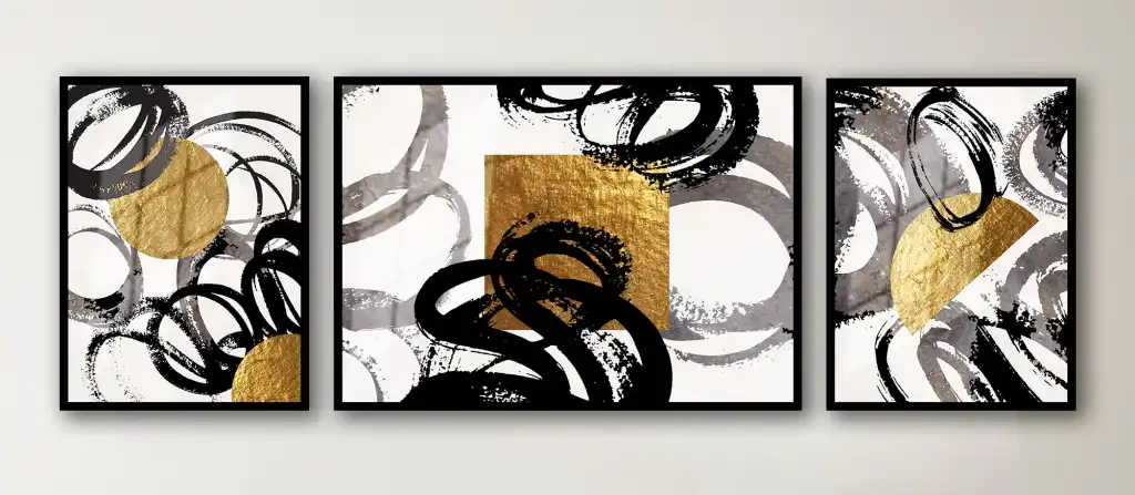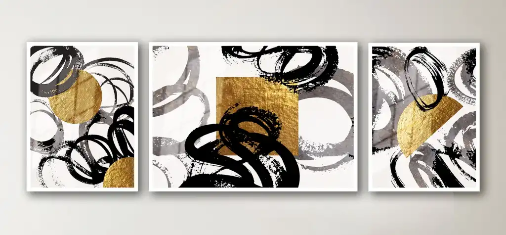 Bestablo 3 Parça Çerçeveli Dekoratif Soyut Ahşap Tablo Seti Bestablo