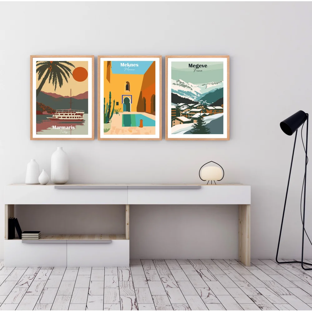 Bestablo 3 Parça Çerçeveli Manzara Ahşap Tablo Seti Bestablo