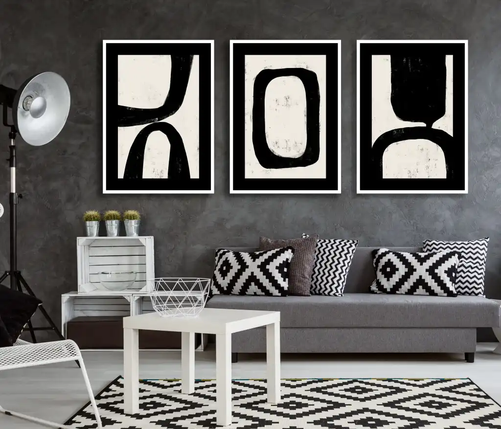 Bestablo 3 Parça Çerçeveli Soyut Ahşap Tablo Seti Bestablo