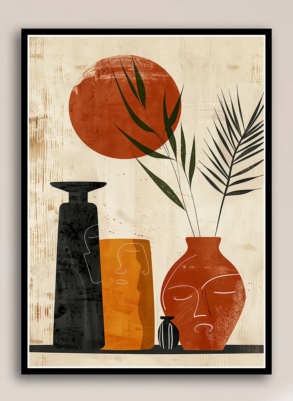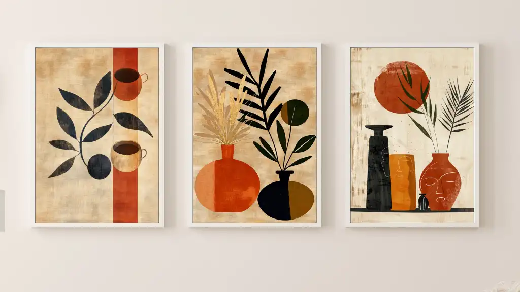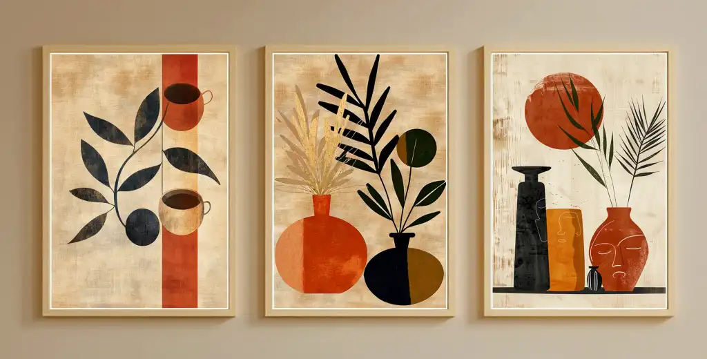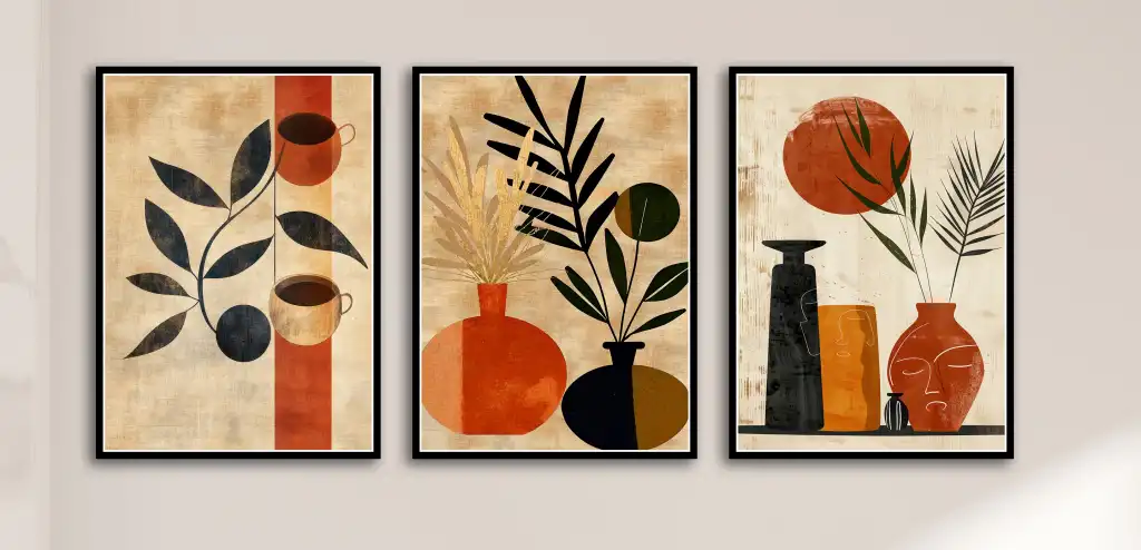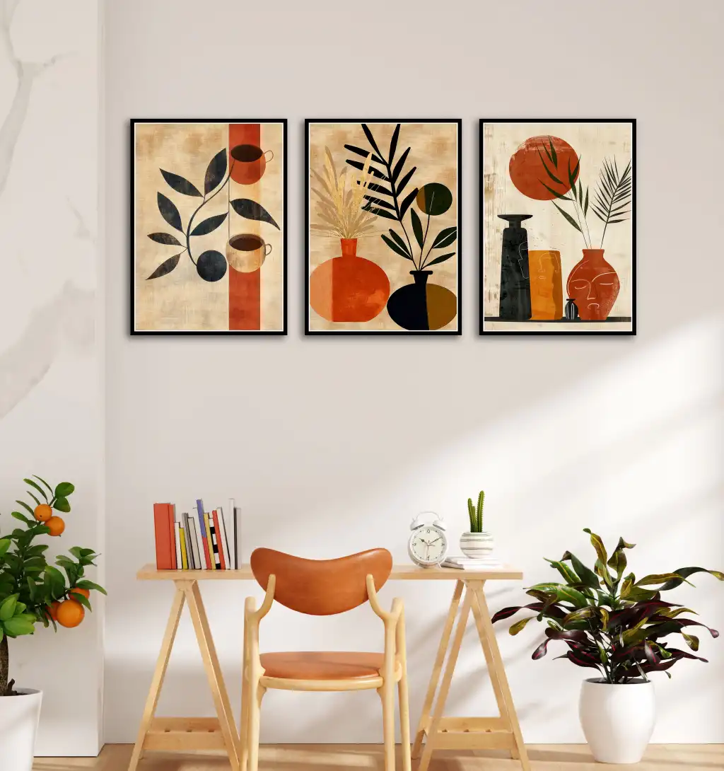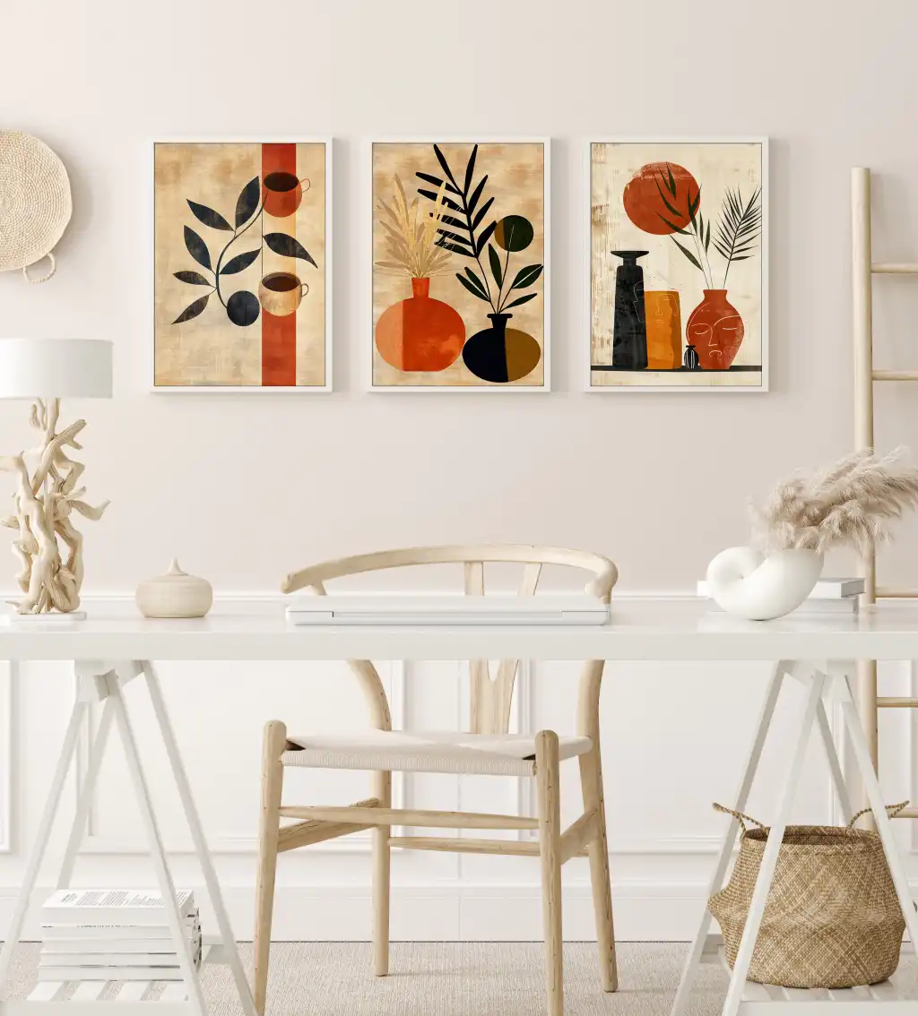 Bestablo 3 Parça Çerçeveli Vazolar Boho Ahşap Tablo Seti, Ev Dekoru Bestablo