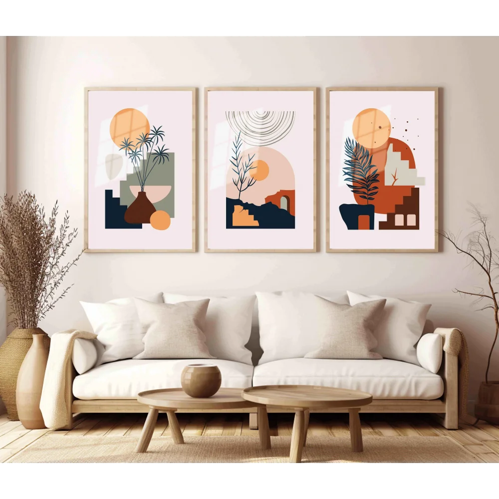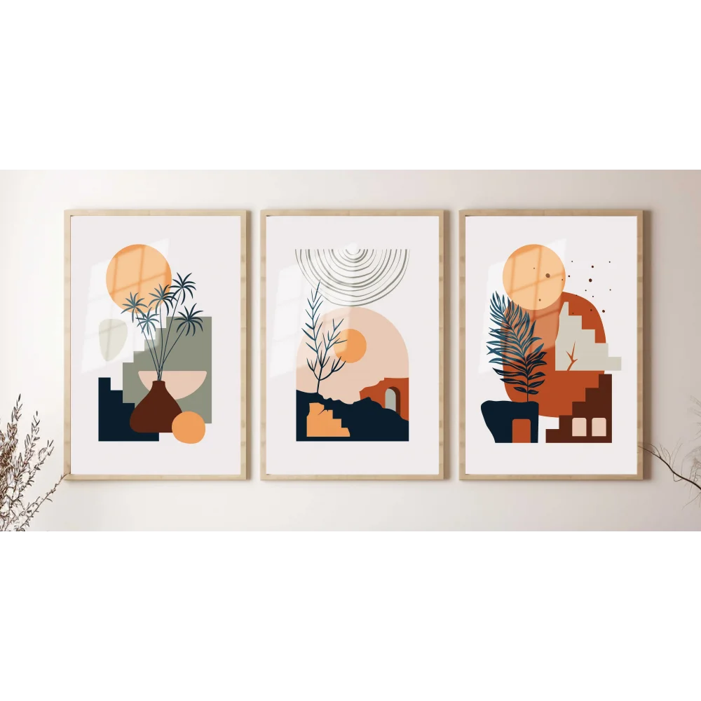Bestablo 3 Parça Doğal Ahşap Çerçeveli Dekoratif Boho Tablo Seti Bestablo
