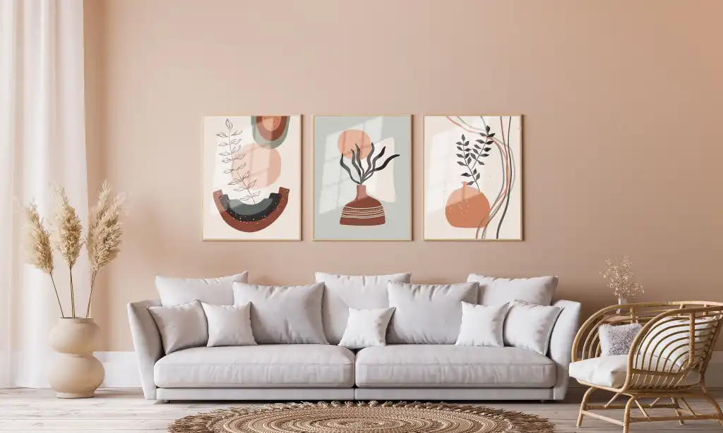Bestablo Doğal Ahşap Çerçeveli 3 Parça Boho Tablo Seti Bestablo