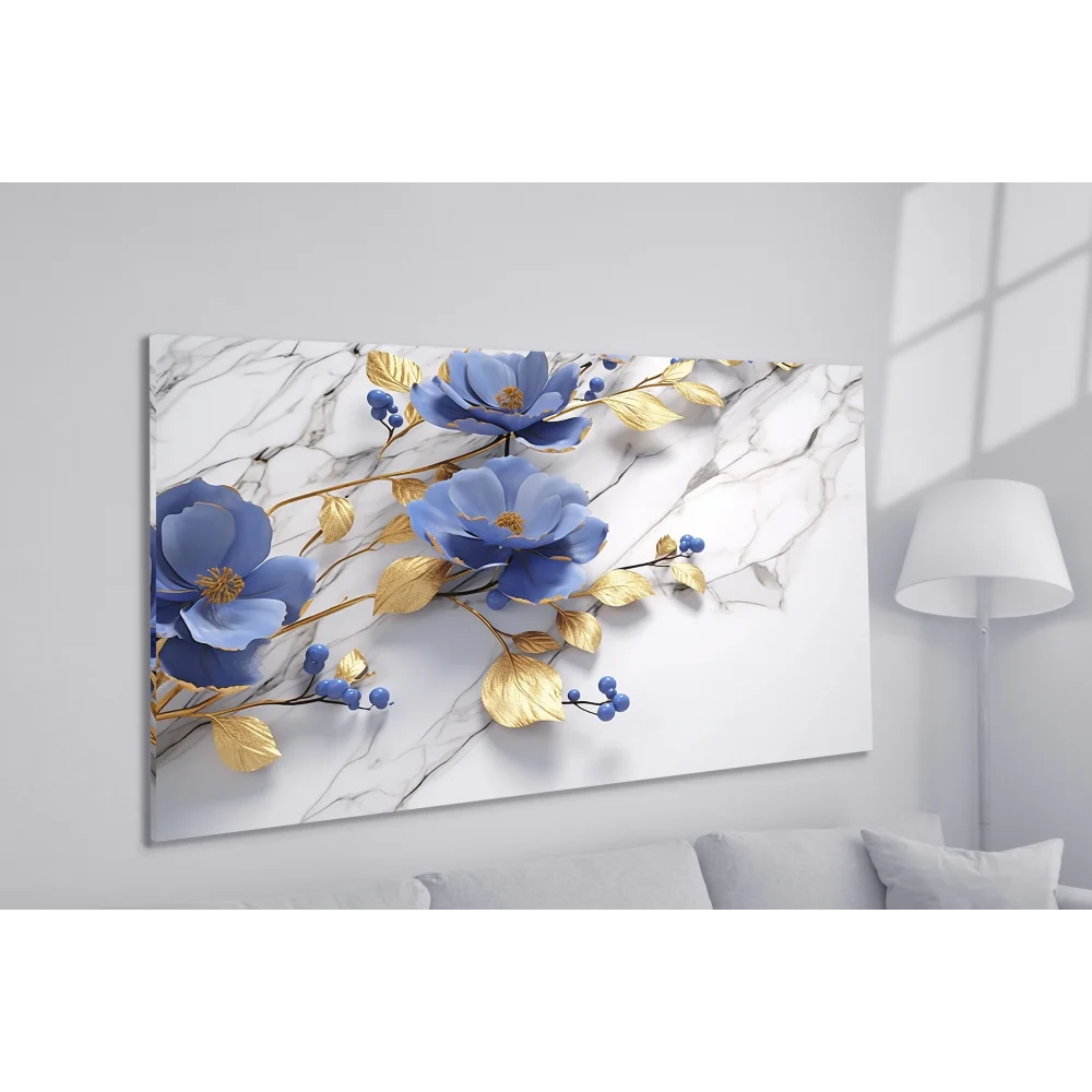 - Varaklı Mavi Çiçekler Kanvas Tablo