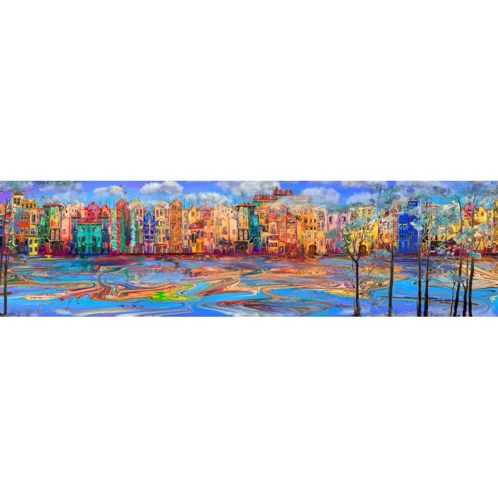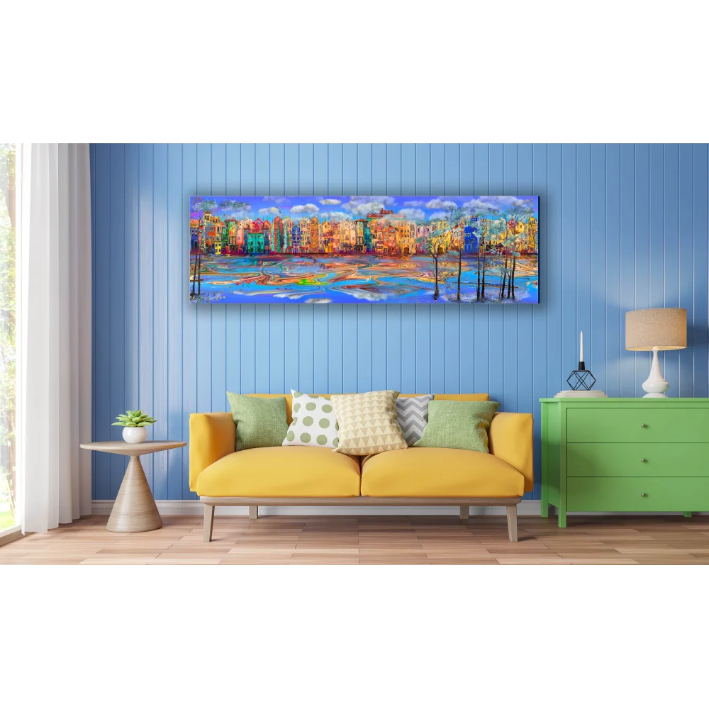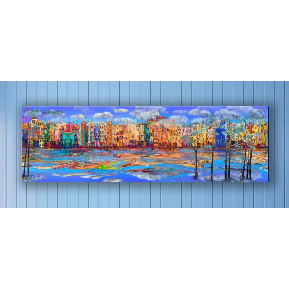 Bestablo Yağlı Boya Görünümlü Renkli Evler 2 Kanvas Tablo Ev Dekoru, Bestablo
