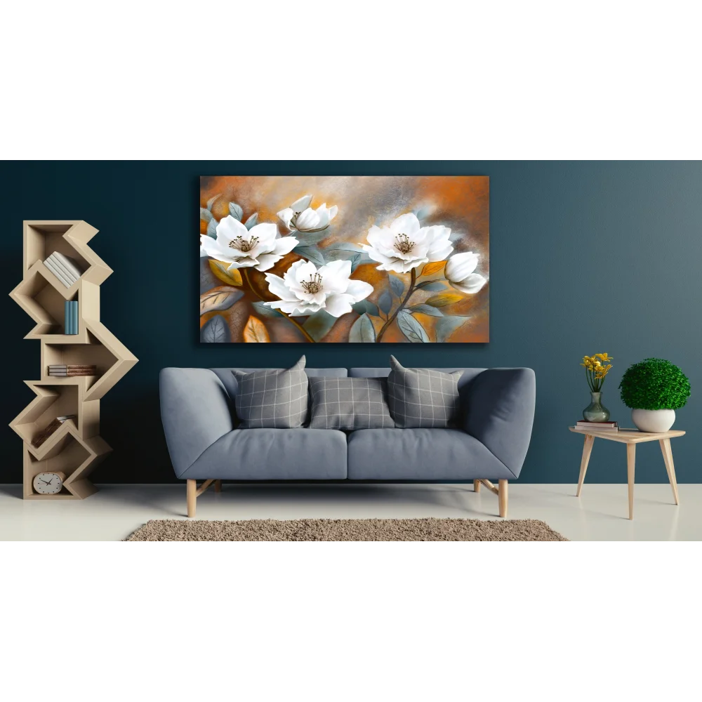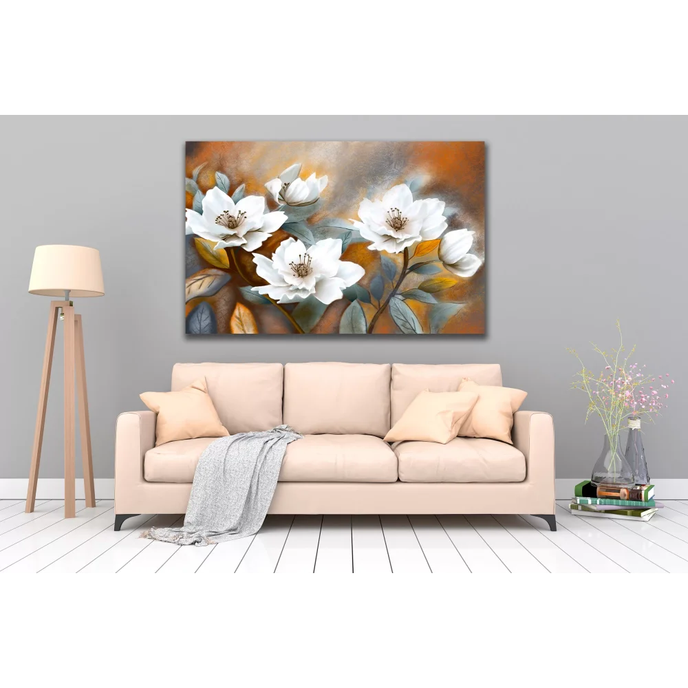 • DEKORATİF BEYAZ ÇİÇEKLER KANVAS TABLO