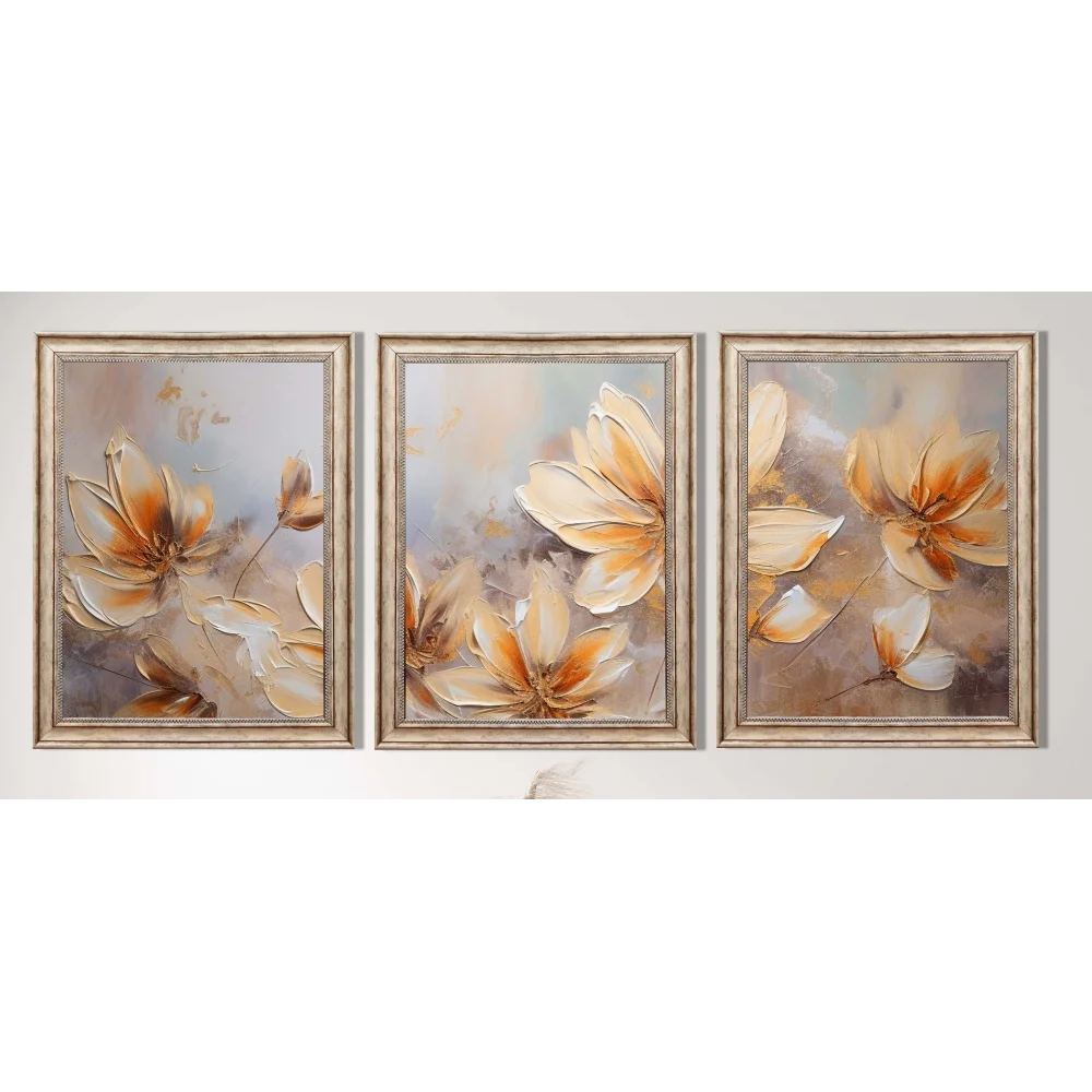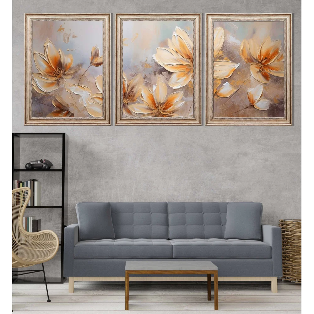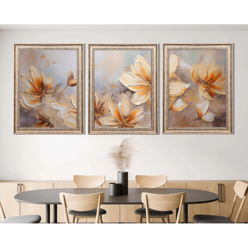 Eskitme Çerçeveli Dekoratif Çiçekler Ahşap Tablo, Ev Dekoru
