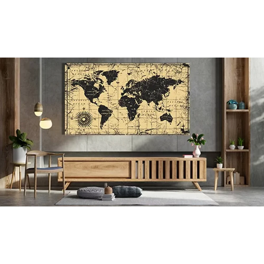 • ESKİTME DÜNYA HARİTASI KANVAS TABLO